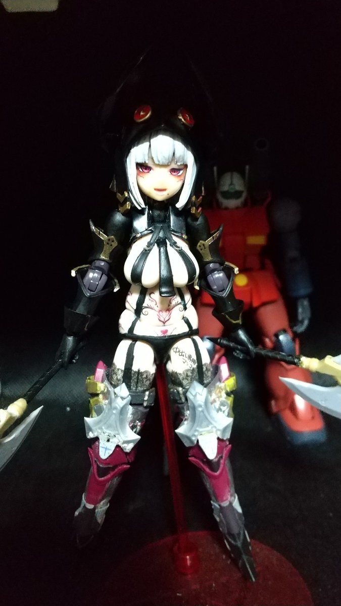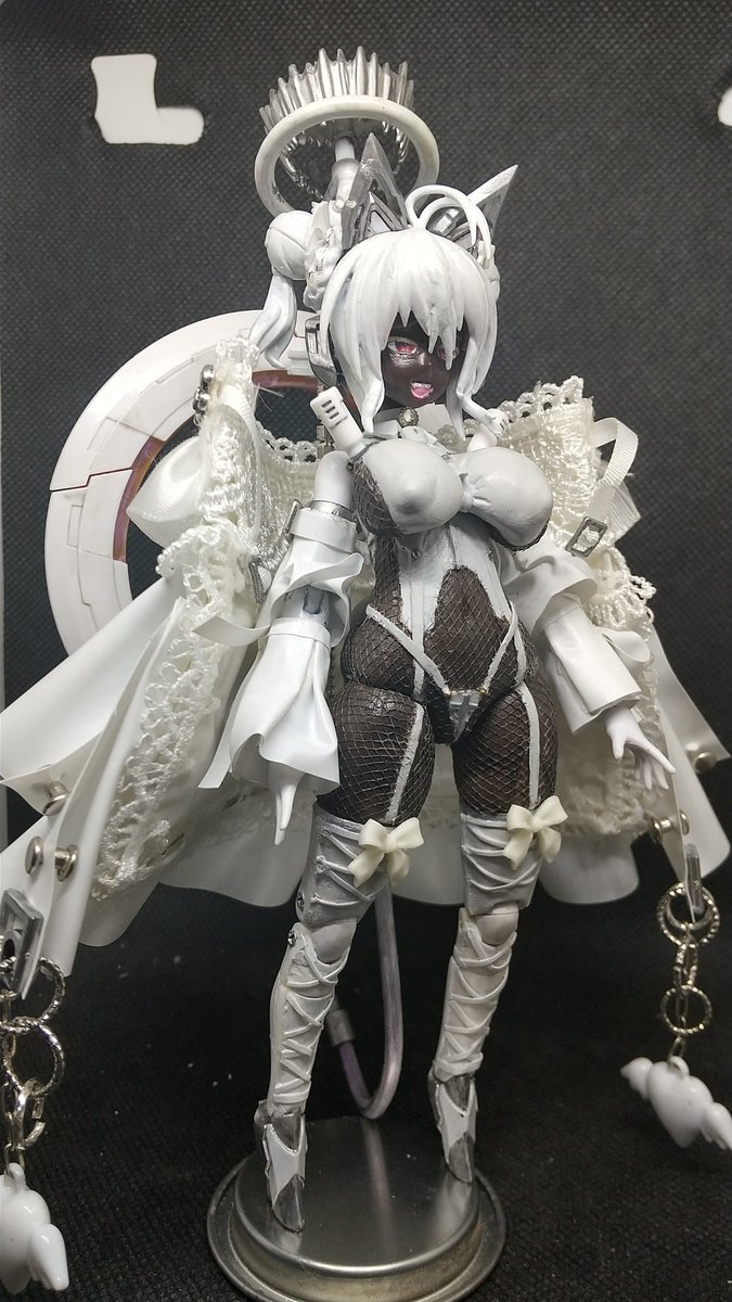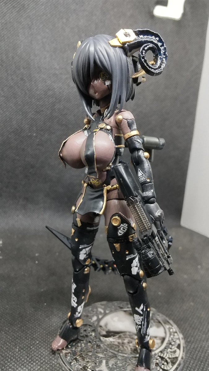 取り敢えず褐色の子はほぼ9割位出来たので専用武装をチマチマやってこんな感じになった。 こっから情報量増やしたり切った貼ったして行こうと思う。完成はまだ先💧 #創彩少女 #フレームアームズガール #メガミデバイス