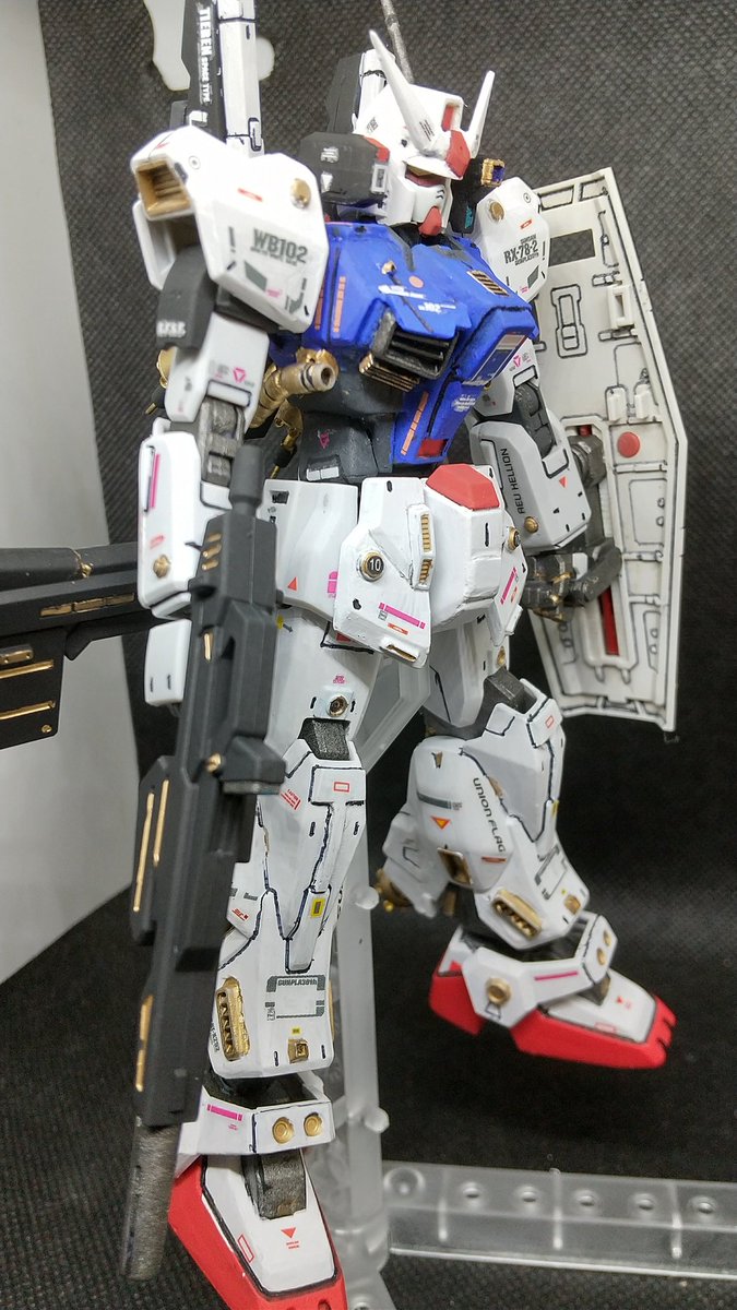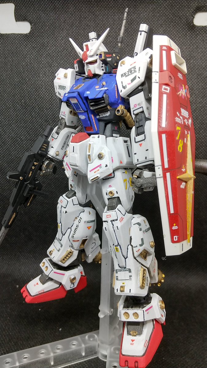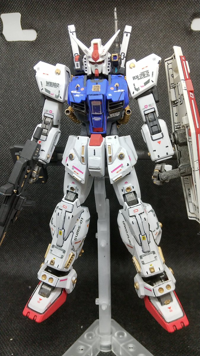 1、2ヶ月放置状態だったRXー78ガンダム完成(^.^) ガンダム、マークⅡ、インパルスをミキシング。配色は今回、主人公路線で筆塗り。デカール貼りは疲れた💧 #ガンプラ #ガンプラはどんな自由な発想で作ってもいいんだ #ガンプラの画像貼るとRTされると聞いて