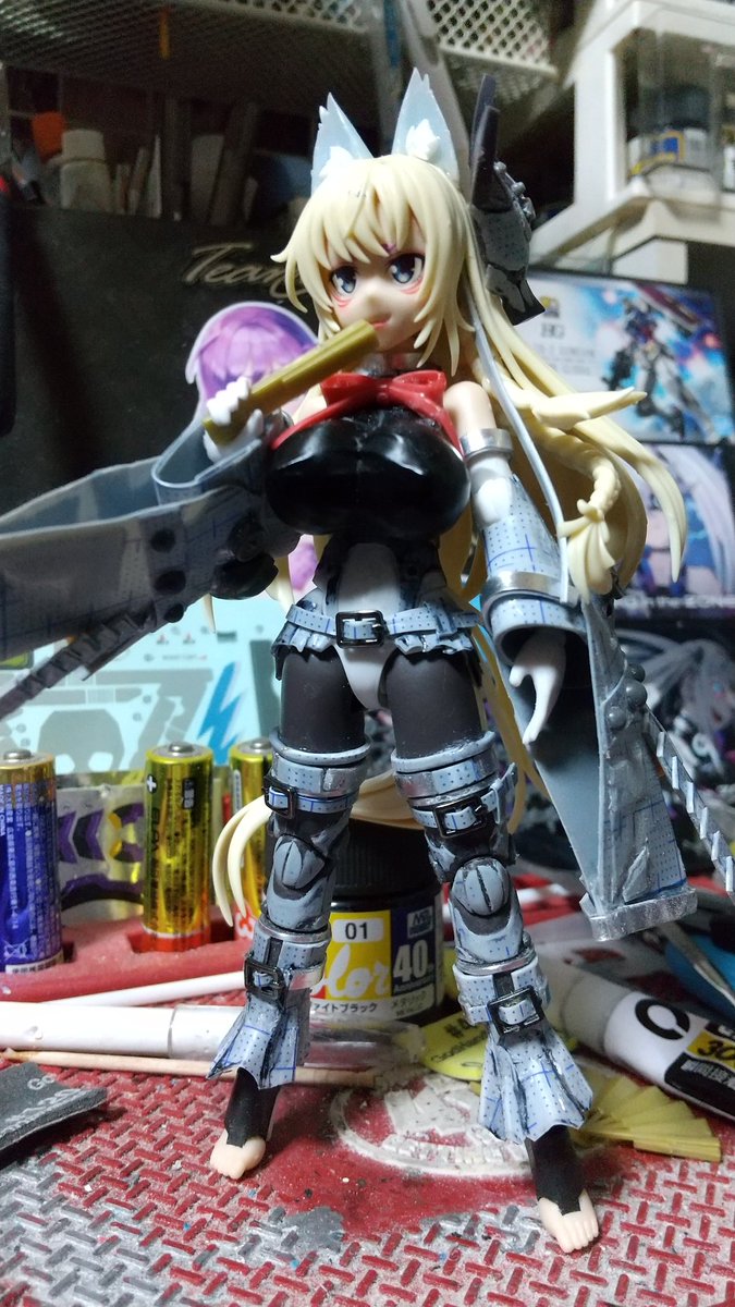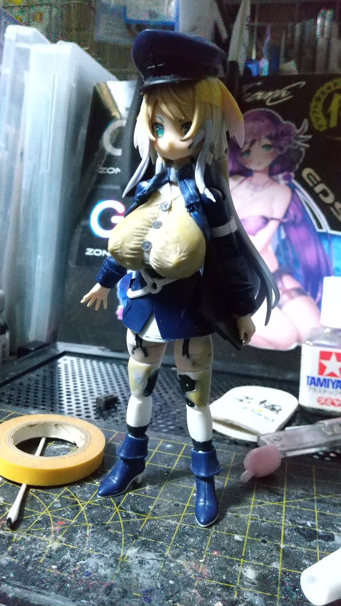 ロリ巨乳メスガキ軍服ワンコ制作中(*•̀ᴗ•́*)و ̑̑低身長化も躊躇なく出来るようになった。完成はまだ先だけど順調に作業を進めてる。 #メガミデバイス #フレームアームズ・ガール #エイティシックス