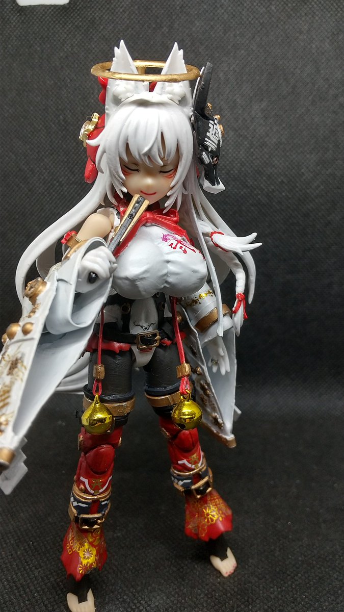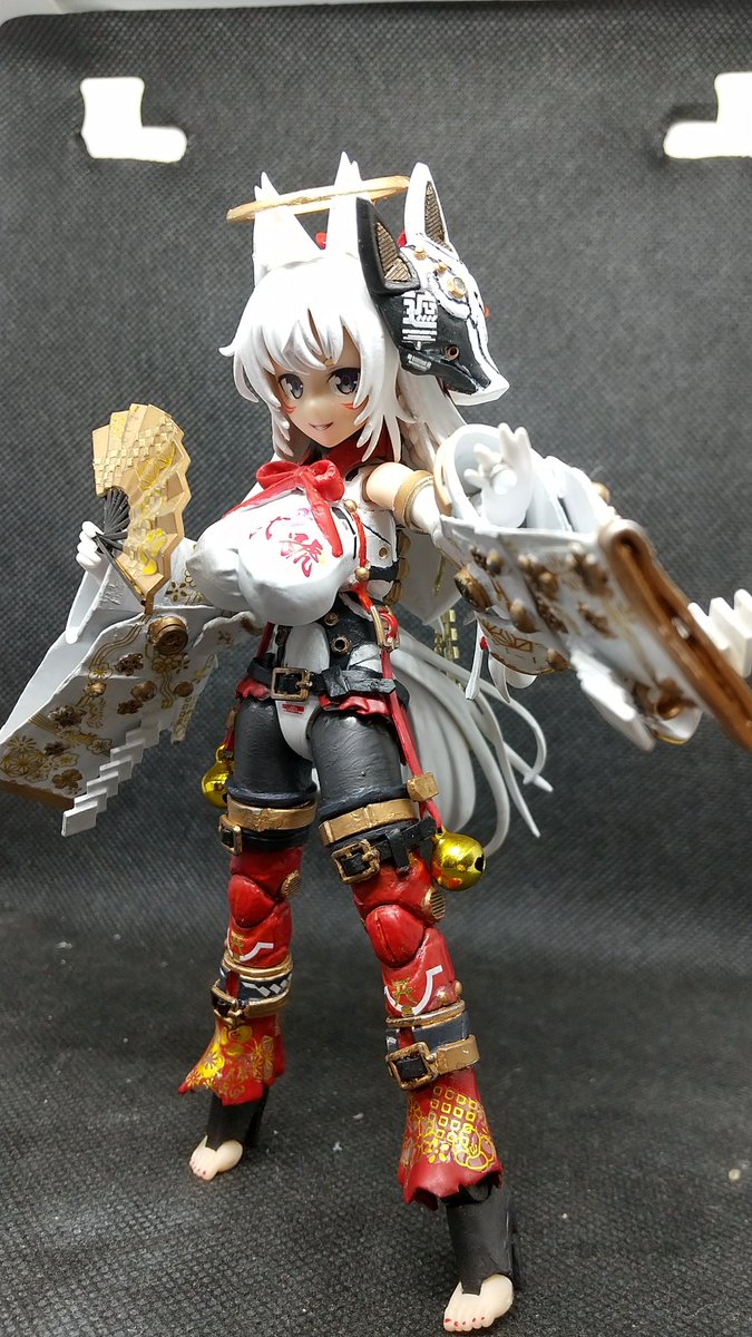 白華改め『葛乃葉』完成✨ 白華(はっか)はなんか呼びにくいので晴明のママの名前に決めた。 正式名称バトルスーツMー01人造九尾[葛乃葉]誕生(^o^)/ #メガミデバイス #うちの子描いてみませんかキャンペーン