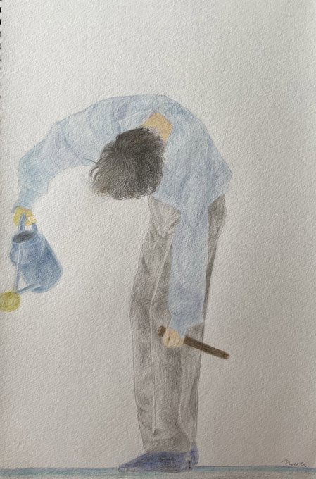 米津さん!お誕生日おめでとう(2回目)🎉 背景なしも置かせてください 膝を曲げて頭を垂れる姿に感動して ずっと描きたいと思っていました🙏💙 #米津玄師誕生祭2023 #米津玄師2022TOUR変身 #米津玄師 #色鉛筆画