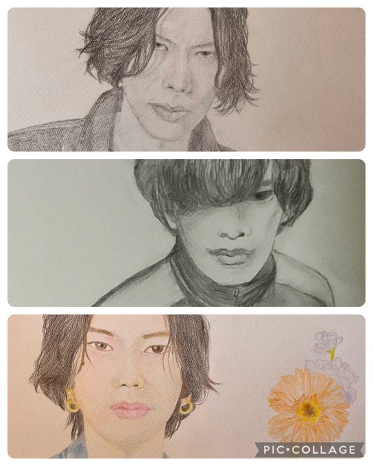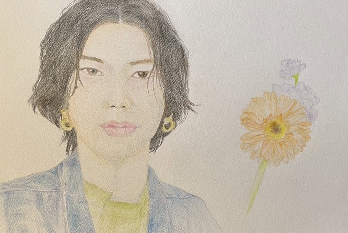 貴方の音楽のシャワーのおかげでいつも幸せです。 与えて貰うばかりですが、注がれた愛でどんな小さな花でも咲かせられるように生きていかなければと思います。 愛と感謝を込めて32歳のお誕生日🎂 おめでとう㊗️ #米津玄師誕生祭2023 #色鉛筆画 #ibispaint 背景