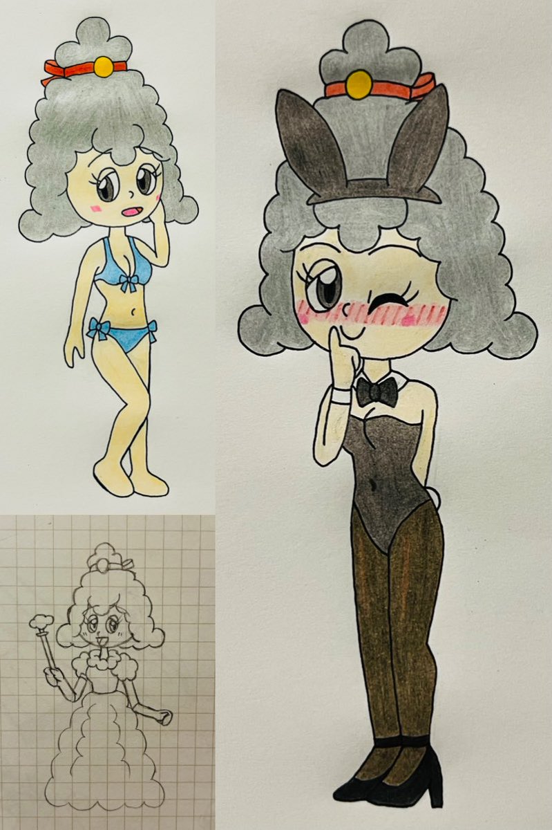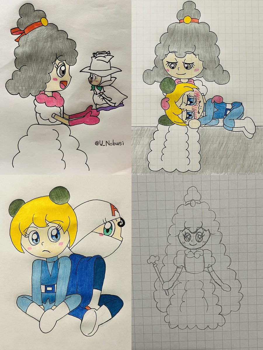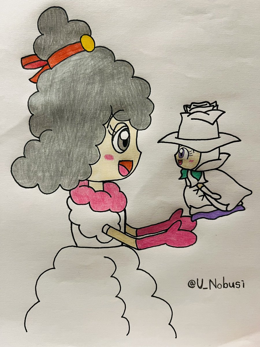 #アンパンマン版深夜のお絵かき60分一本勝負 お題:「白」 初参加失礼します お題が白ということで、モクモク女王様と白バラ女王の2人の白い女王様を描きました 白バラ女王は初描きですが、頭の薔薇の構造がよく分からず…… この組み合わせ、いつか実現したら良いな……