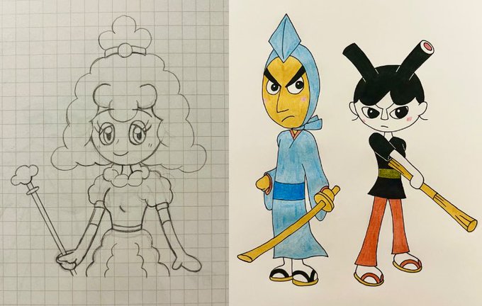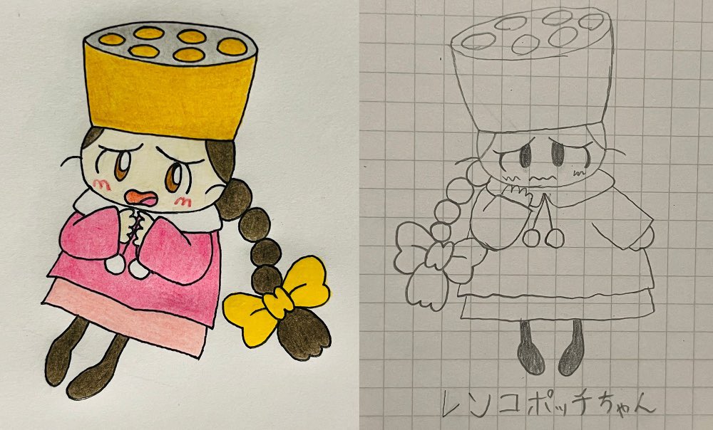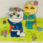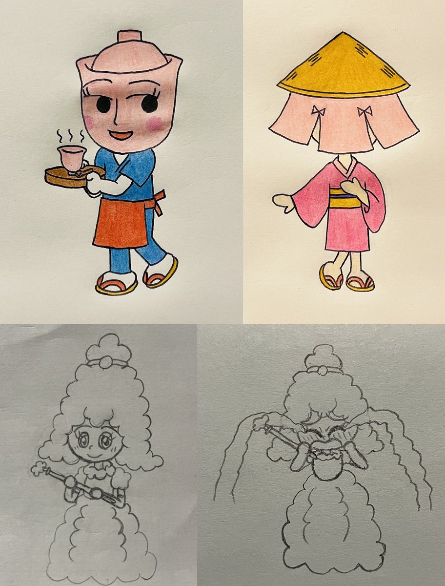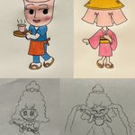 #お前の絵柄に絶対合うのに何で描かないのっていうアンパンマンキャラをフォロワーさんが教えてくれる ↑のタグで挙げられていたキャラのおしるこちゃん、のれんちゃんが仕上がりました(´∀`) お汁粉を入れる器が違うかも知れないです;