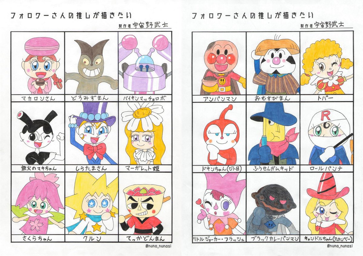 #お前の絵柄に絶対合うのに何で描かないのっていうアンパンマンキャラをフォロワーさんが教えてくれる ↑のタグで挙げられていたキャラの1人のくらやみまんが仕上がりました(´∀`) 悪役キャラの中では一番好きだったりします 手袋はあえて初登場時の赤手袋で描きました