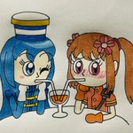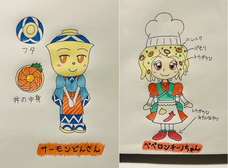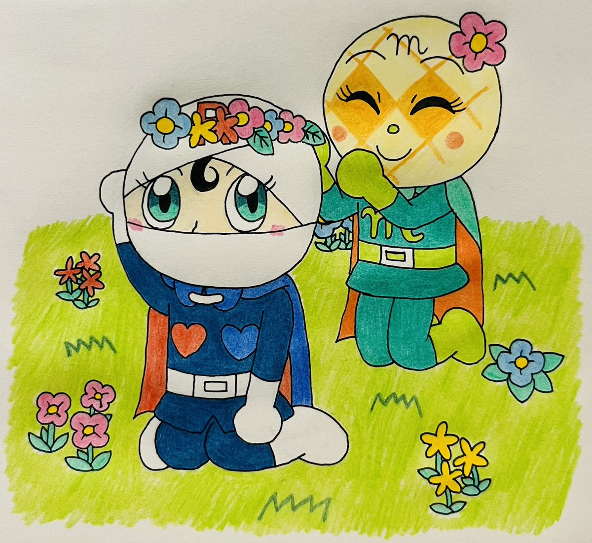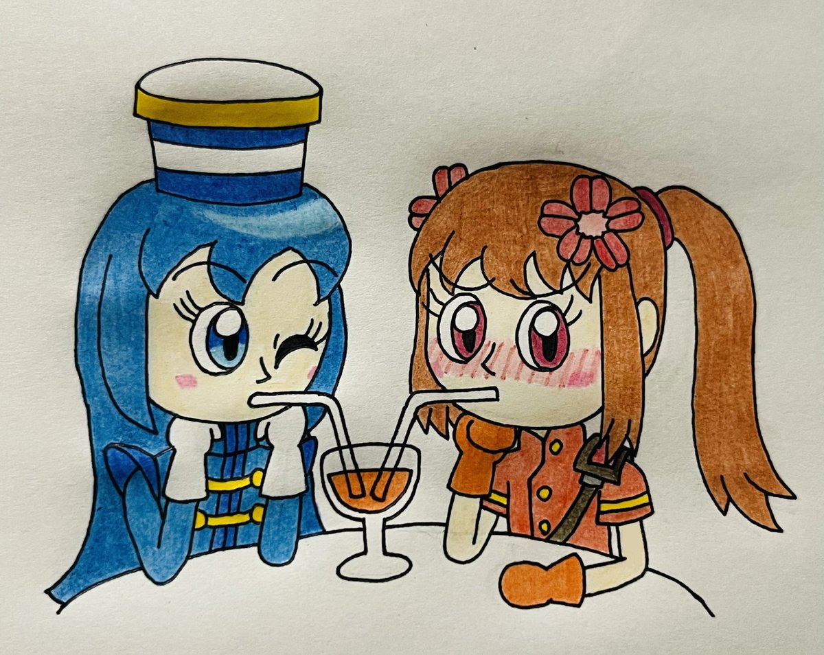 #よそ様のオリキャラをコラボさせたい #アンパンマンオリキャラ サラ氷さん( @salad_koori )のオリキャラのカップアイスちゃんと、我がオリキャラのアキレアさんの百合っぽい絵を描いてみました(´∀`) カップアイスちゃんの頭のカップアイスがちょっと小さくなっちゃったかも……;