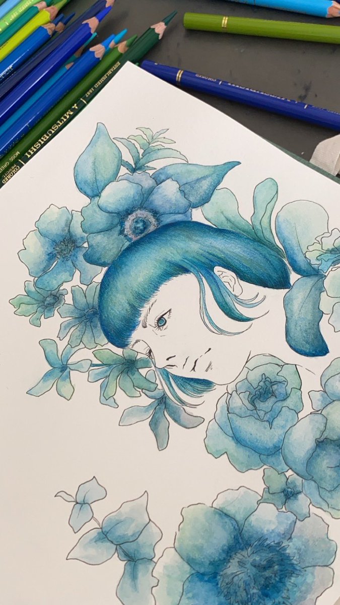 水彩と色鉛筆って相性いいな… #水彩画 #色鉛筆 #イラスト #アナログイラスト