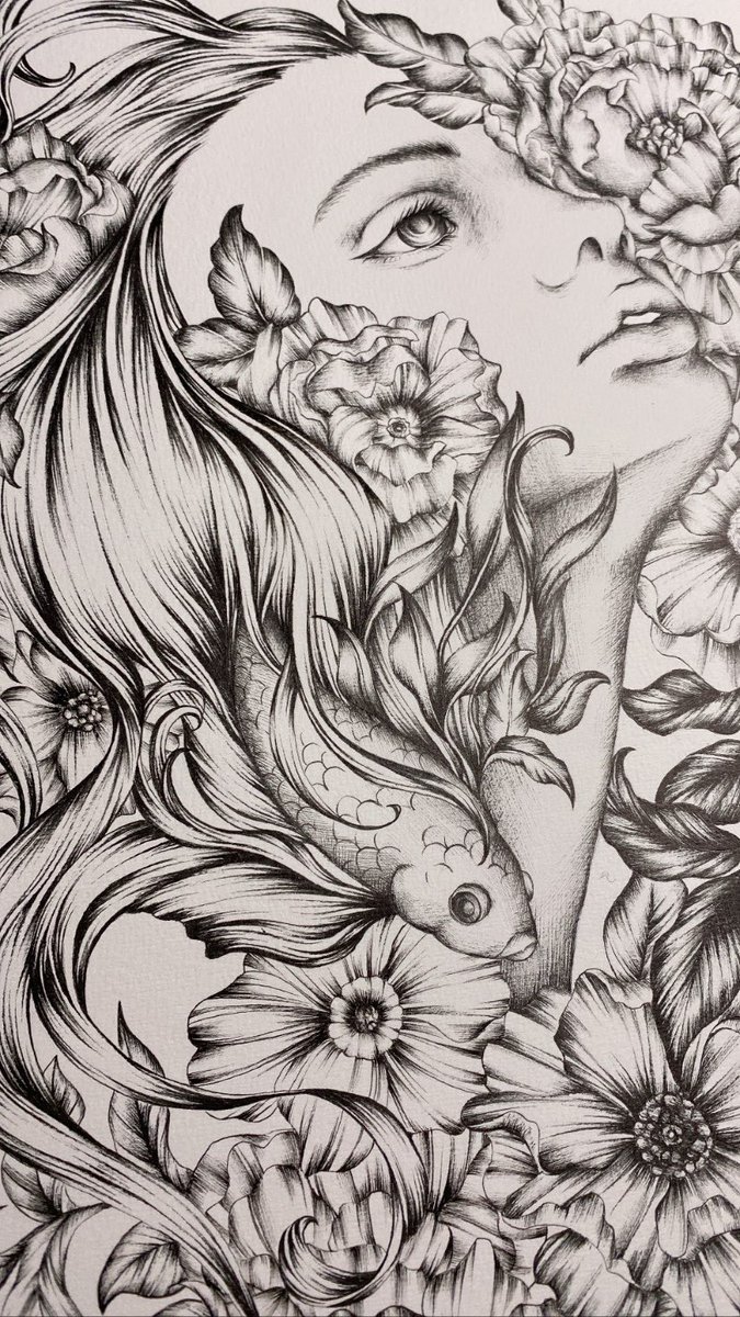 線画完成! 色付けるか迷う… #イラスト #絵 #線 #線画 #アナログ絵 #アナログイラスト #ペン画 #illust #illustartion #art
