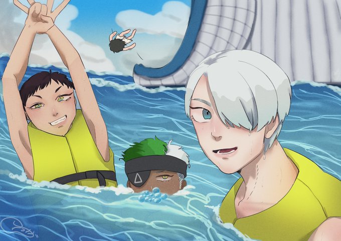 夏!!海!!☀️🌊🤸♂️🏊♂️🏊♂️🏊♂️🏖️🩴 #ツド絵