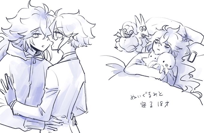 26 208 普通に話してるだけだけどめちゃくちゃ距離が近い付き合ってる💀🐙とぬいぐるみと寝てるイデヤくんのらくがき 23/07/22 22:51