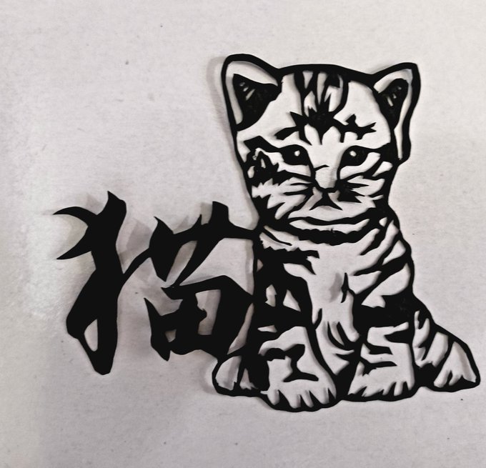 今晩は井上志源です。 今日は子猫の切り絵です😺 魔除けの効果があり、幸せが訪れるパワーがある縁起のいい動物❗ #猫 #切り絵