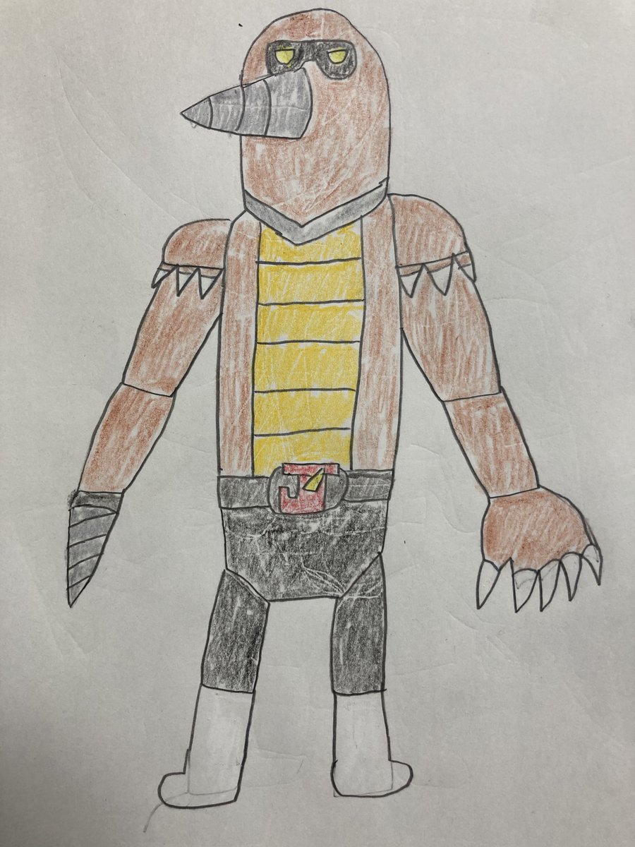2 7 今回は、ヤモリモチーフに「侵入する」と言うワードから忍者要素も付けたしました。ヤモリは体色色々あるので迷った挙句、灰緑を基本に腕と手はニホンヤモリとトッケイヤモリにしてみました。マスクからの顔はヤモゲラスの体色と怒りに満ちているイメージで描きました。 #オリジナル怪人 #絵心ない 22/06/25 00:31