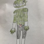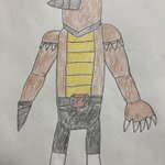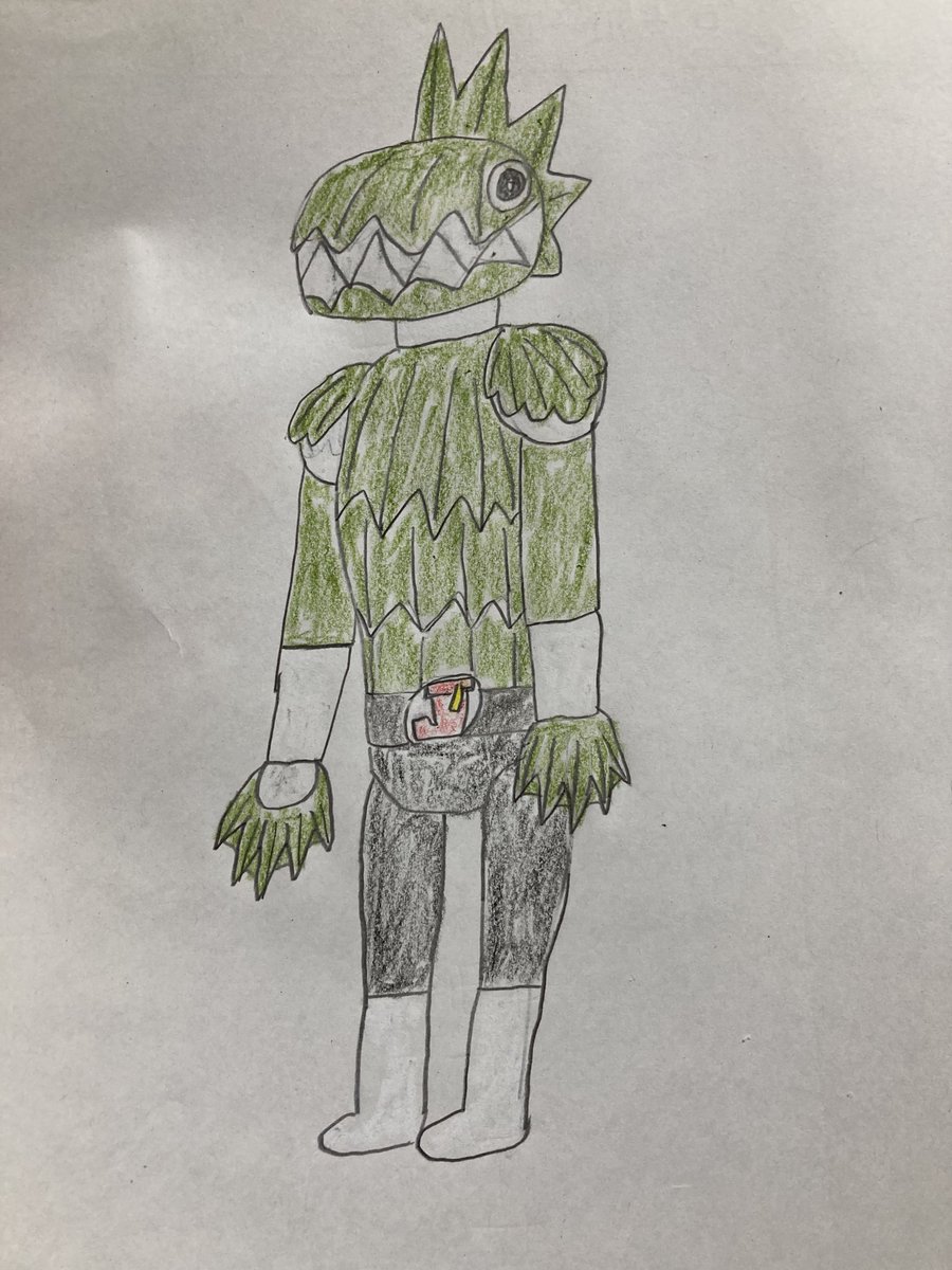 今回は、ヤモリモチーフに「侵入する」と言うワードから忍者要素も付けたしました。ヤモリは体色色々あるので迷った挙句、灰緑を基本に腕と手はニホンヤモリとトッケイヤモリにしてみました。マスクからの顔はヤモゲラスの体色と怒りに満ちているイメージで描きました。 #オリジナル怪人 #絵心ない