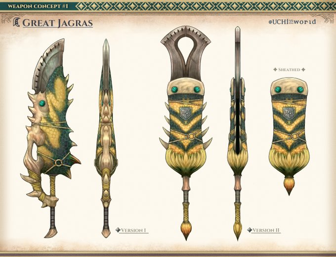 Weapon Concept #1: Great Jagras Greatsword For the scavenger spirit that can make anything out of anything. I'm taking suggestions for weapon names for the mod from here on, it's a deceptively hard part of the project. #MonsterHunter #モンハン
