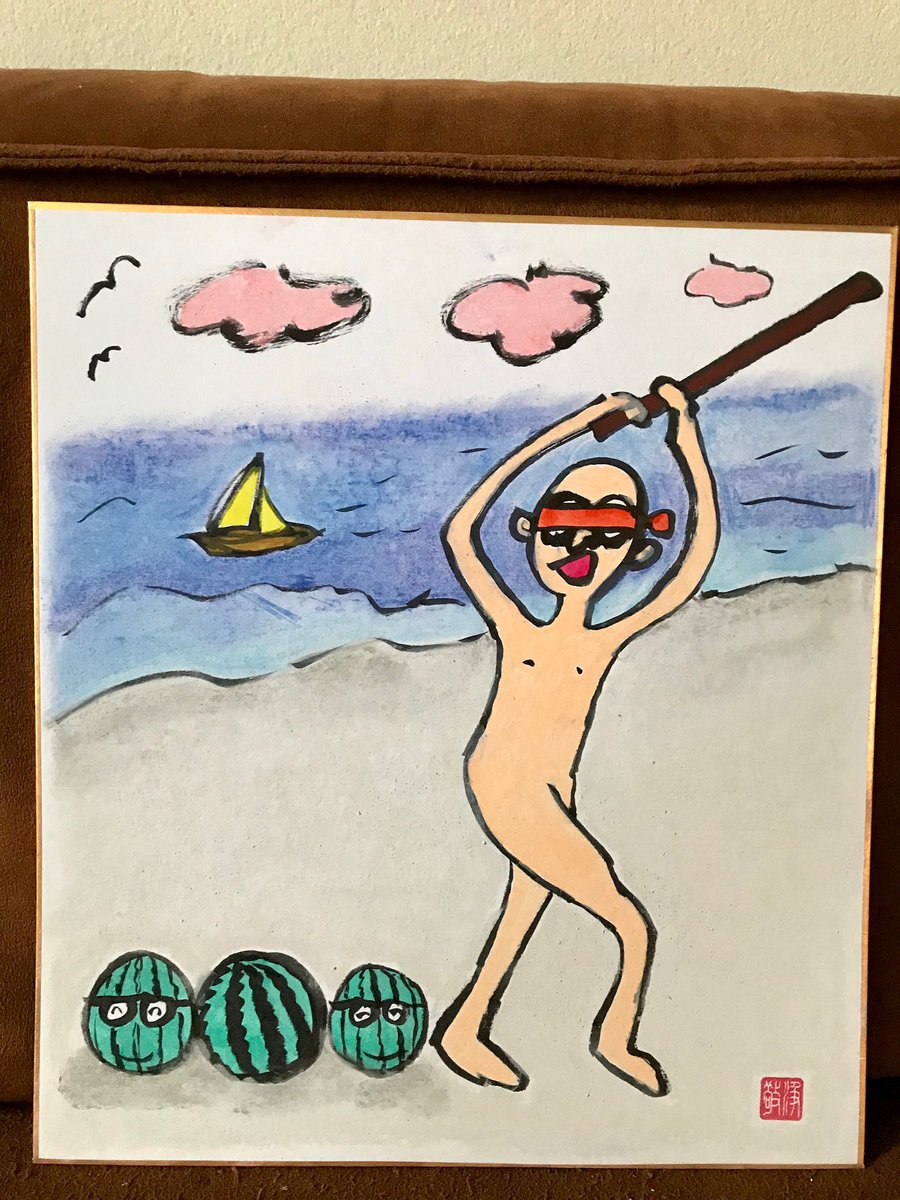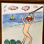 0 4 裸メガネ #イラスト #海 #スイカ割 #夏休み 22/07/11 09:44