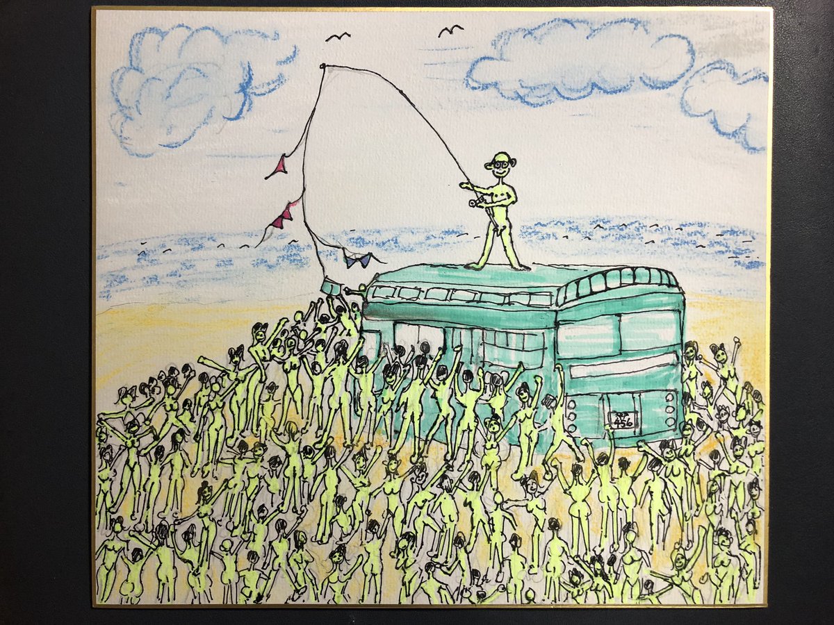 裸メガネ #イラスト #海 #スイカ割 #夏休み