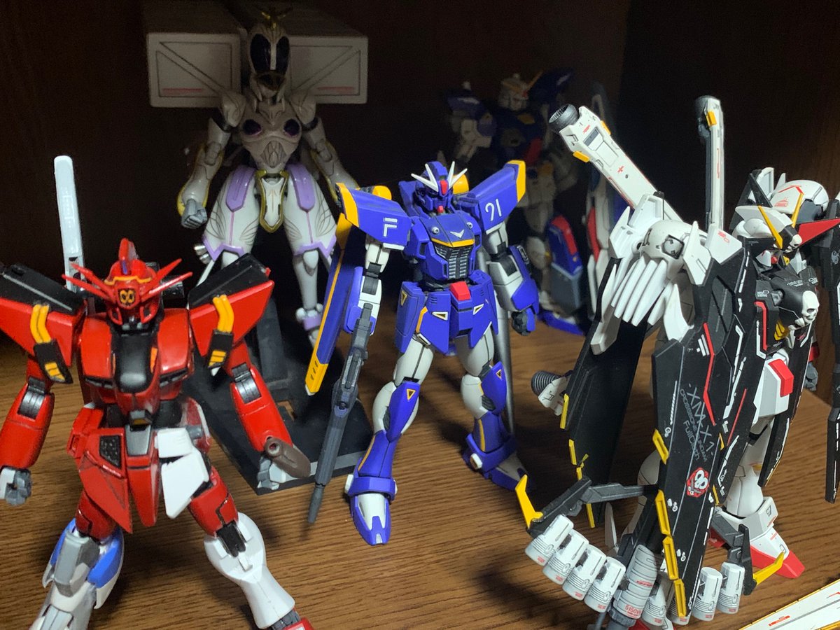 細々とした調整とウイングバインダーの大まかな形状出しを進めています。 作業が終わったら、棚の『鋼鉄の7人』エリアに収納…😊 この棚を眺めて作業のモチベーション維持にしています😆 #ガンプラ #クロスボーンガンダム #鋼鉄の7人