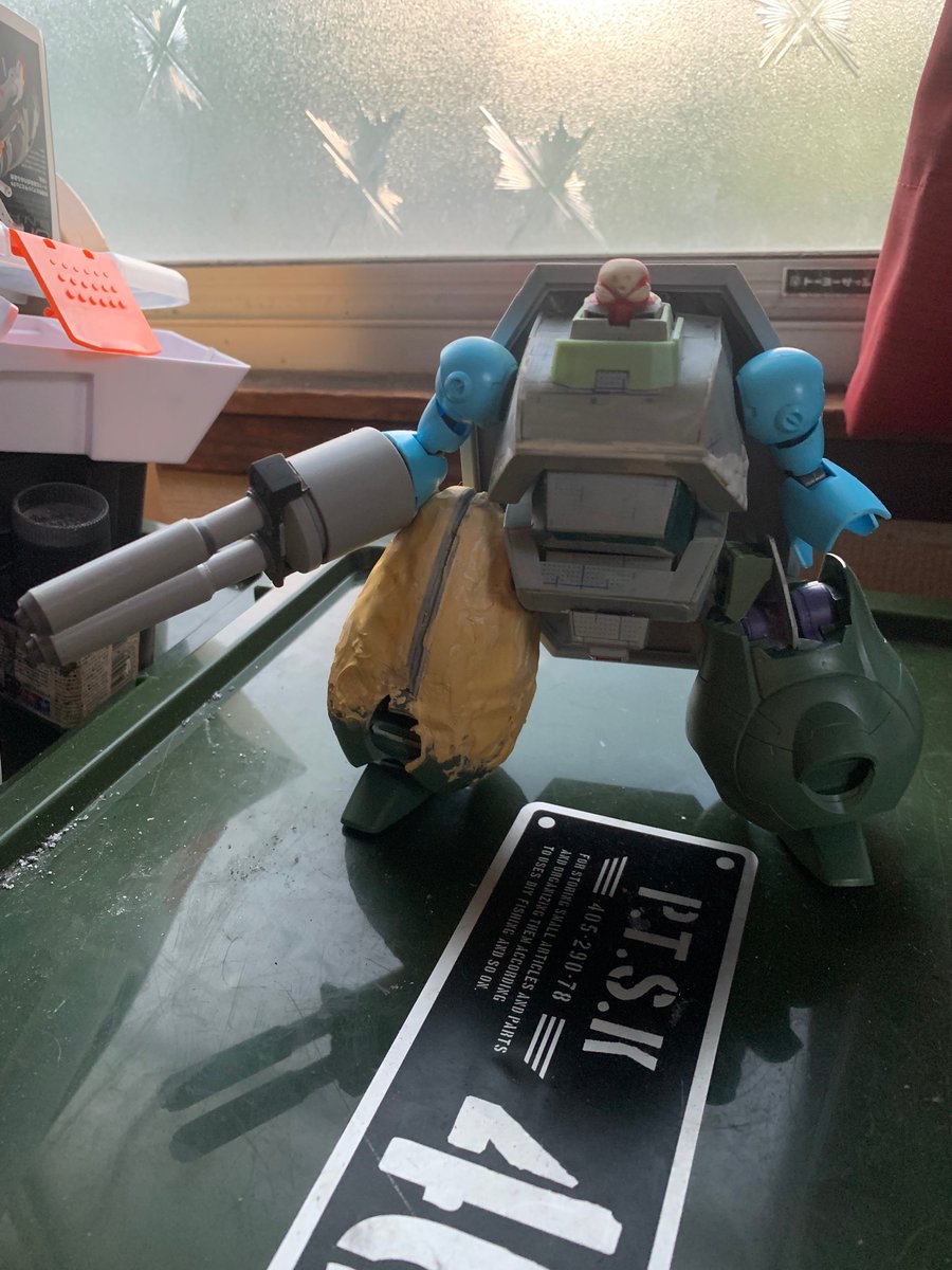 大詰めに差し掛かってきた『ジェノアス Oカスタム』です😆 後は、左肩の調整と塗装と頭部両脇のサブカメラに3㎜真っ角のクリアパーツを貼り付けるくらいでしょうか? 次回には完成報告出来ればなぁ…と😊 #ガンダムAGE #ガンプラ好きとつながりたい #ジェノアスOカスタム