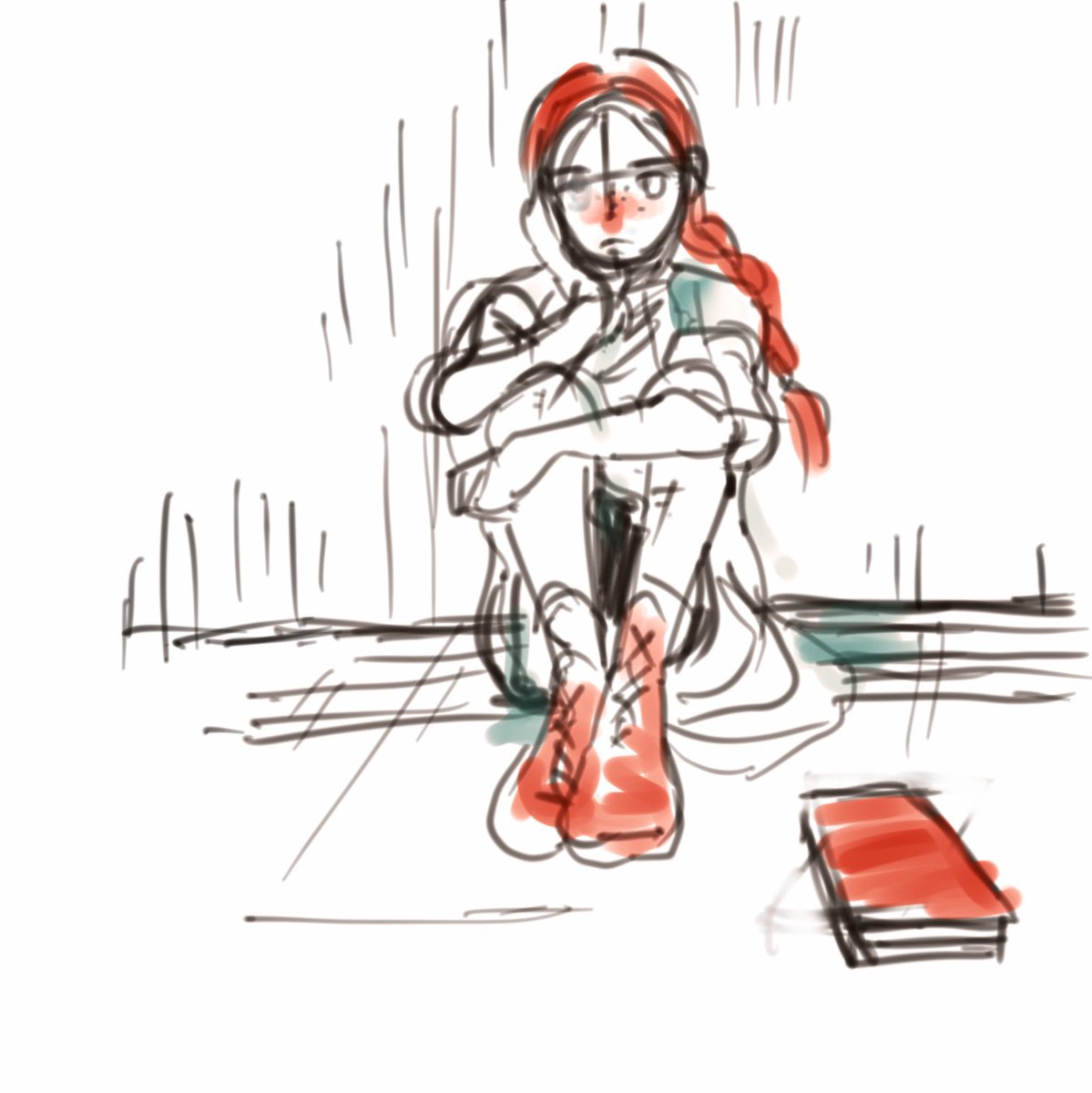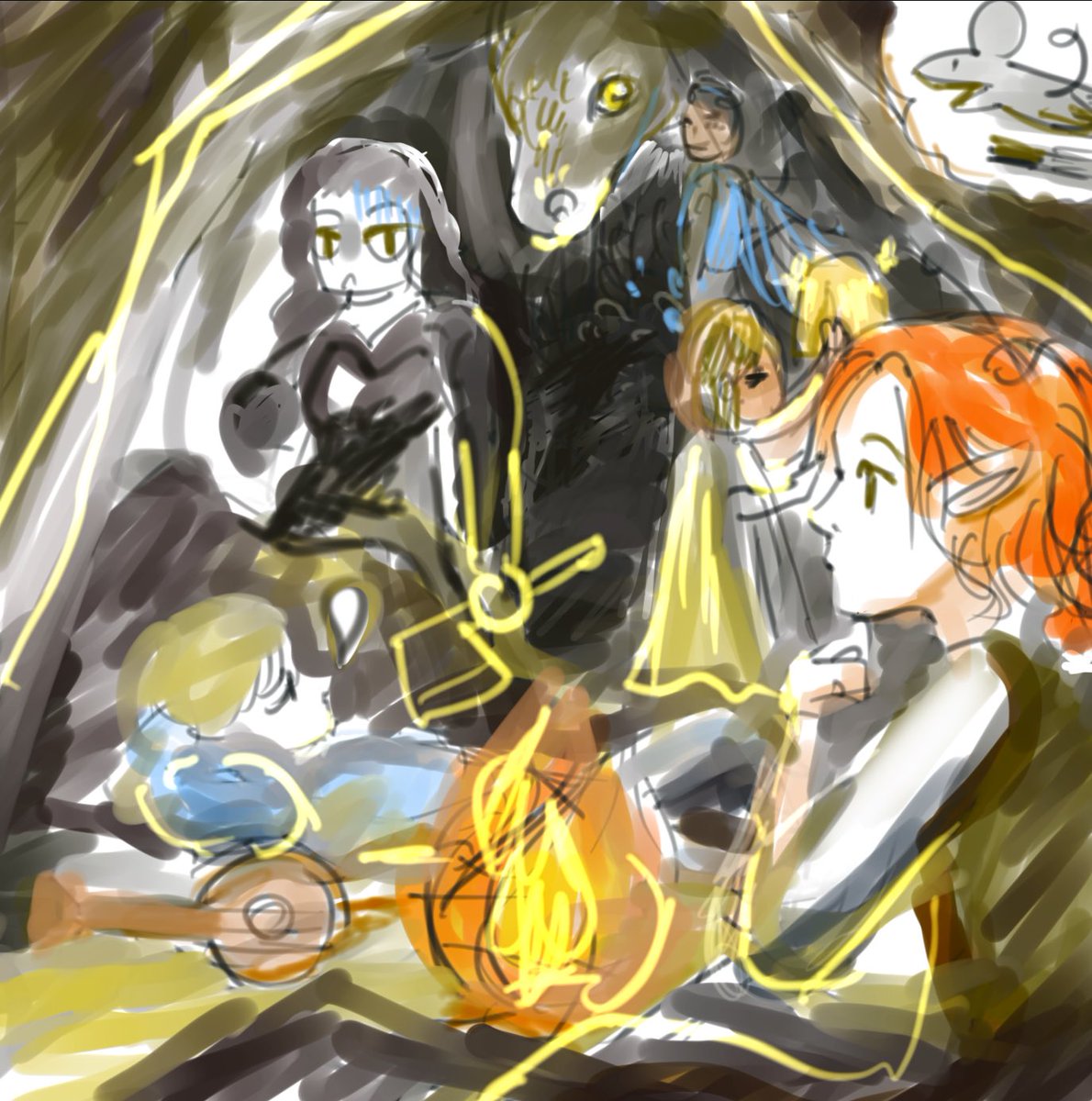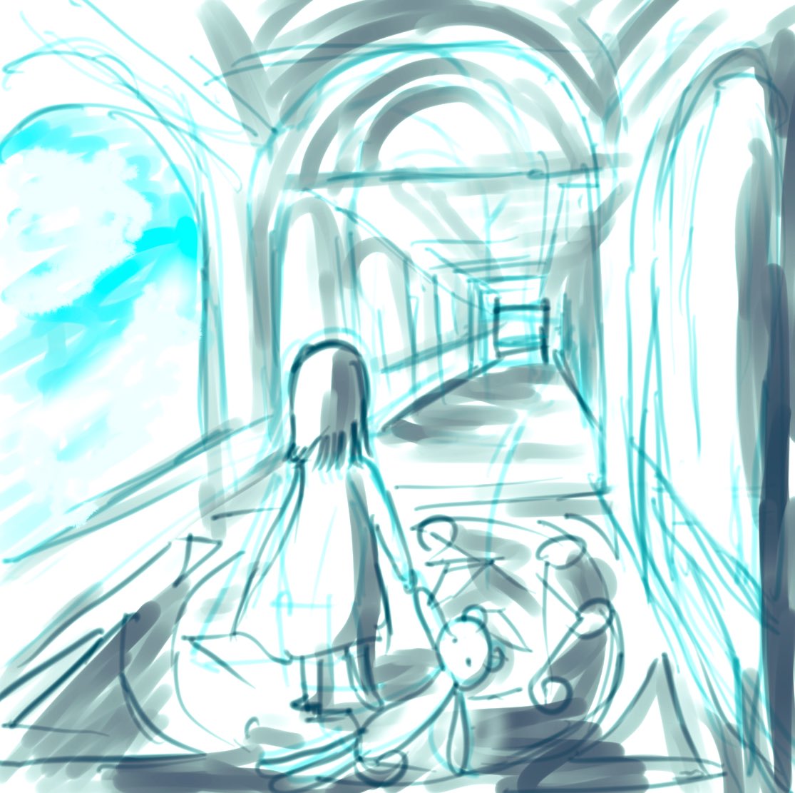 課題から逃げてるという…😅3日目の孤独な少女思い浮かばずピンタレスト彷徨い…線書いただけで1時間終わる…;洞窟もダンジョンアンドドラゴンズ(?)見たあとだったのでただの訳わからない落書きに😂 こま切れでも時間ちゃんと計らないと; #KUA追っかけワンドロ