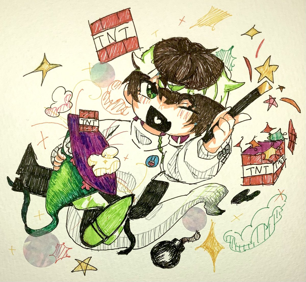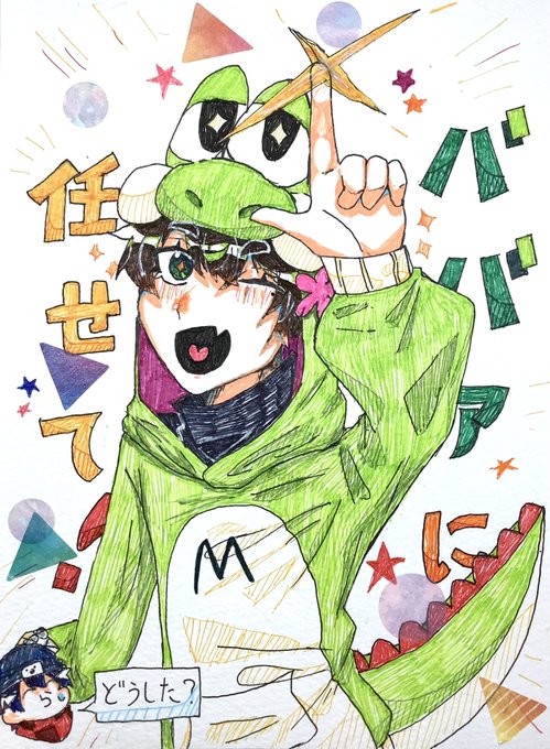 #緑色さんご自由にどうぞ なにかと可愛くかけた