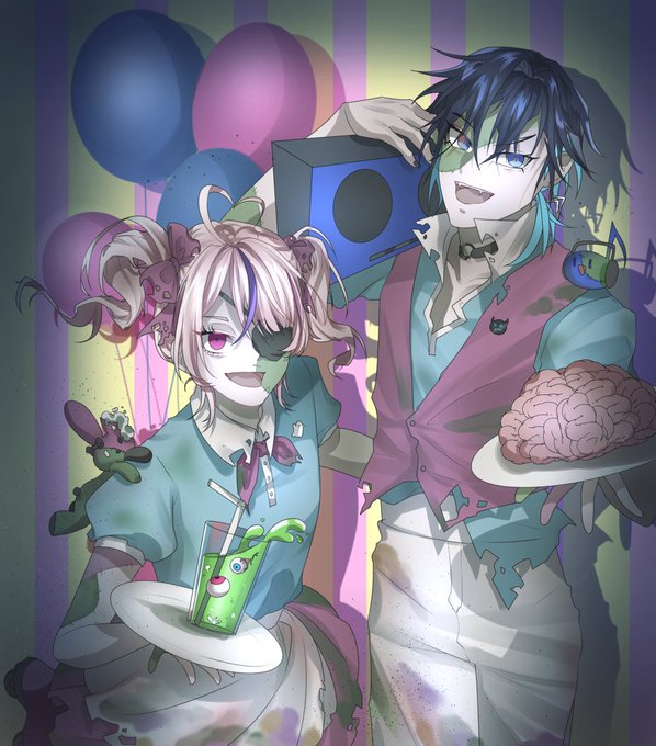 유고&마리아로 할로윈 합작 참여했습니다!!!>< 주최해주시고 참여해주신 분들 모두 수고하셨습니다! 링크에 멋진 작품들,,, 아주 많으니까요, 봐주세요, theme: 🧟🧟♀️Zombie Waiter&Waitress🍽️🧠 #MariArt #AsumArt twitter.com/Ne2ko_OUO/st…
