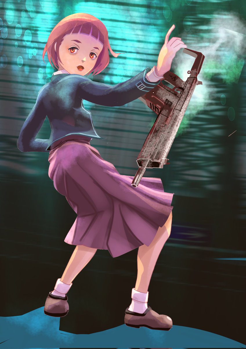 #夏の創作クラスタフォロー祭り #作品をみてくださいあわよくばフォローしてください祭 #イラスト #絵 #リコリコ #リコリコ1周年 チサトちゃんです!ちょっと変わった銃口(≧▽≦)/