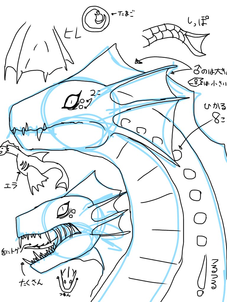0 4 #イラスト 海竜。指描きはこのクオリティになります。 22/07/26 00:57