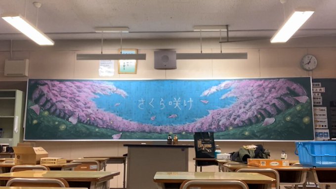 一関市立大原中学校にて初🌟 黒板アートを描かせていただきました!卒業生と担任の先生へ、アートでサプライズをしたいとの相談から実現した試みでした✨ タグお借りしてハッピーラッキーみんなに届け! #卒業式黒板アート2021