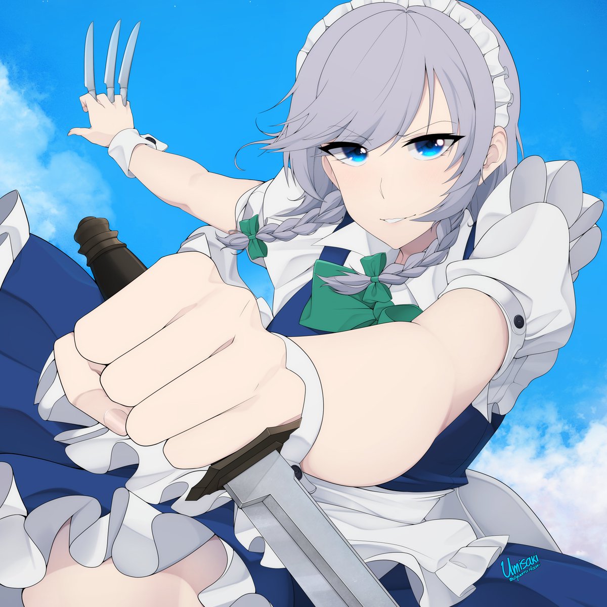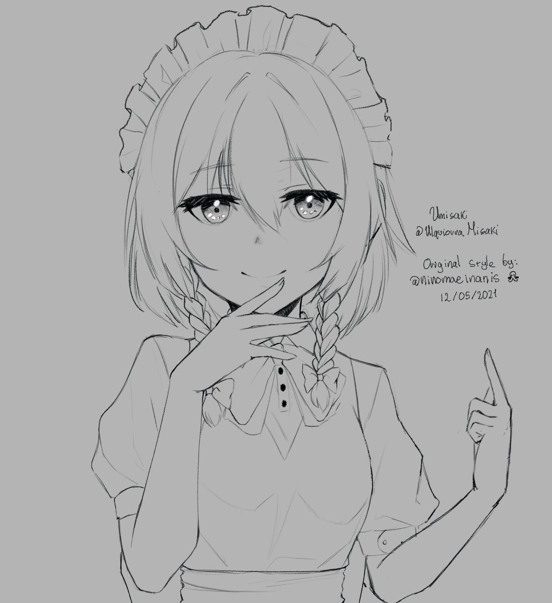 A little wip of my study on @ninomaeinanis 's style! Pixiv: pixiv.net/en/artworks/89… You can find most of her art here! ➡️twitter.com/i/events/13904… #東方 #東方Project #十六夜咲夜 #inART #いなート