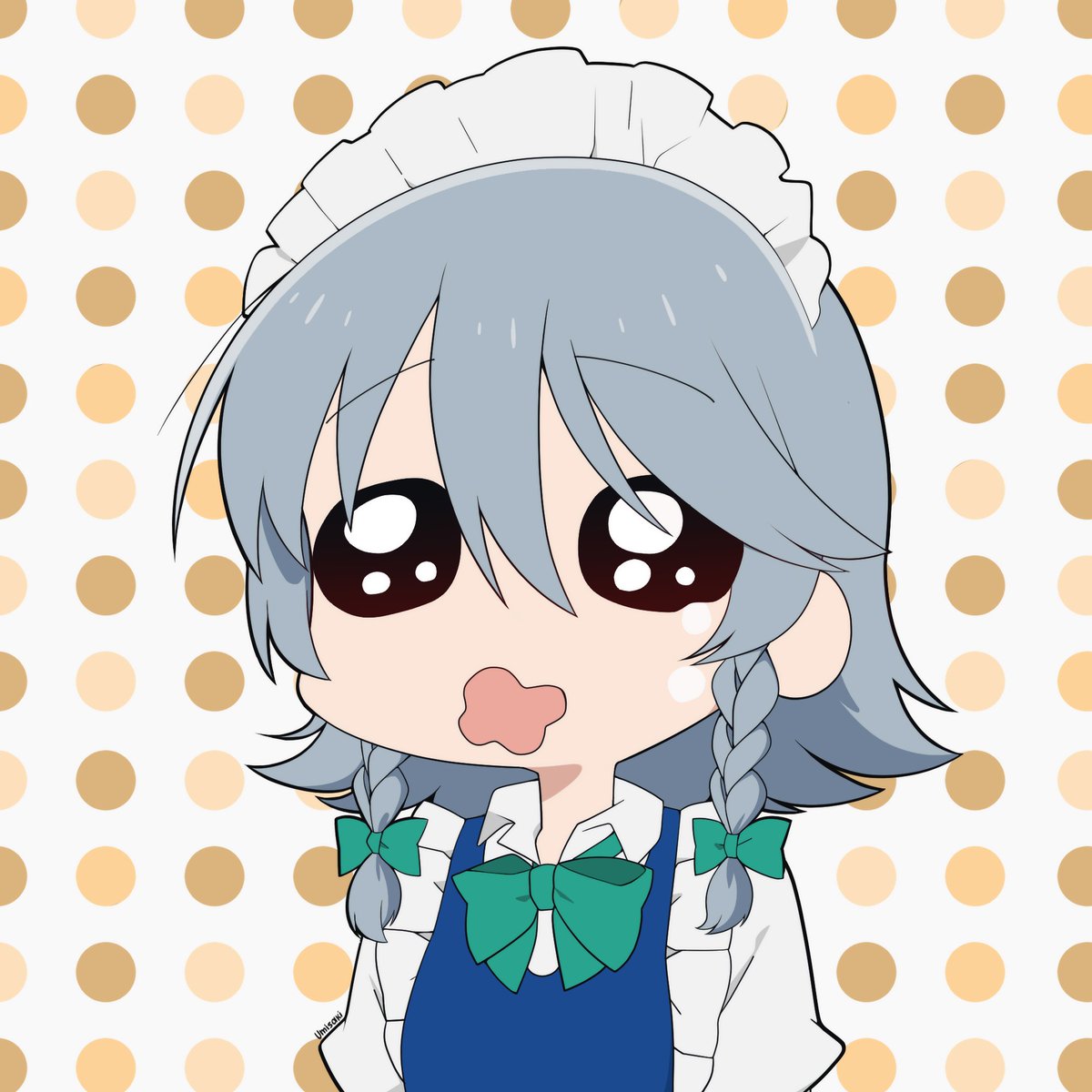Tried mimicking @ninomaeinanis' chibi style and uh I'm kinda happy with the result, even when it isn't nearly as good as the originals! Pixiv: pixiv.net/en/artworks/89… #inART #いなート #東方 #東方Project #十六夜咲夜