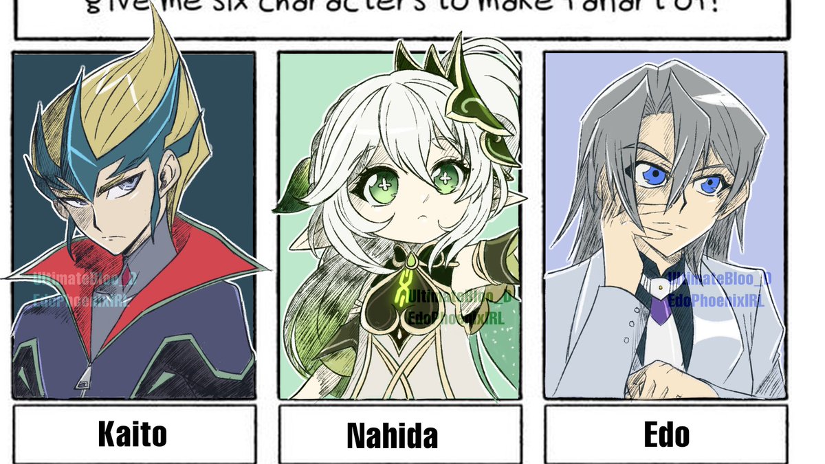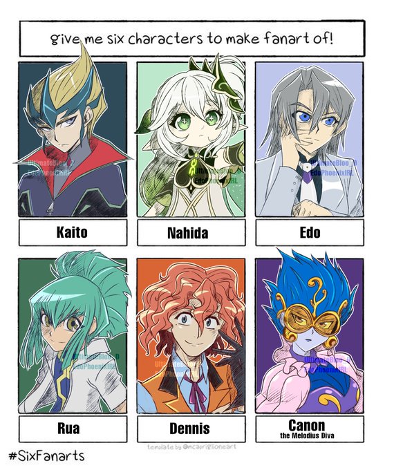 The characters requested for my #SixFanarts challenge. 4 characters I've never gotten the chance to draw before, it was fun! I hope to do this again another time!