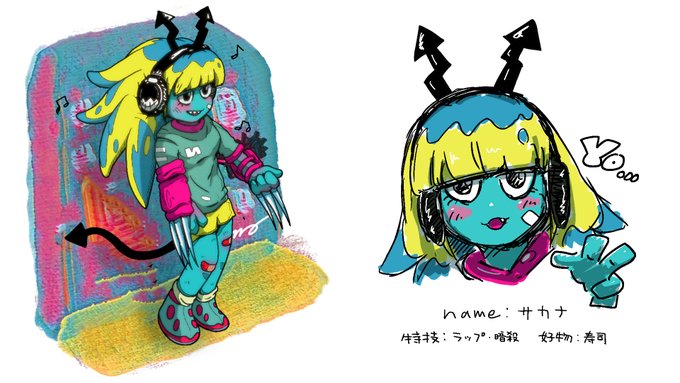 @Yanabotti 2日目優勝のヤナぼっちさんの進化イラストです〜 全体的にボリュームアップしましたね!! 2度目の優勝本当におめでとうございます!!!! #うまのイラスト企画 #イラスト #モンスター ←進化前 進化後→