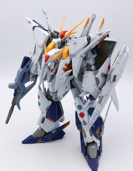 HG AMS-123X-X ムーンガンダム全塗装完成しましたー。 情報密度増やしたくてスジボリとメタルパーツ追加、色分け、最大の特徴であるサイコプレートにはホログラムフィニッシュを沢山使ってます。 続きもあるのでちょっとだけ見てってください! #ガンプラの画像を貼るとRTされると聞いて #ガンプラ