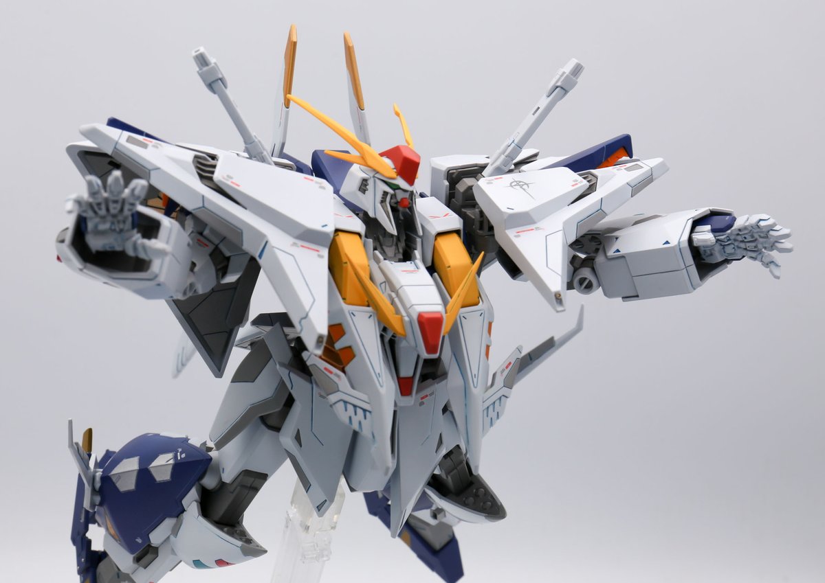 HGクスィーできましたぁああ 過去1のパーツ数と大きさに何度か気を失いつつも漸く完成に漕ぎ着けました... 色分けを意識したくらいで特に手は入れてない拙い作品ですが、金曜の夜の肴程度に見ていただけると泣いて喜びます。 #ガンプラの画像を貼るとRTされると聞いて #ガンプラ好きとつながりたい
