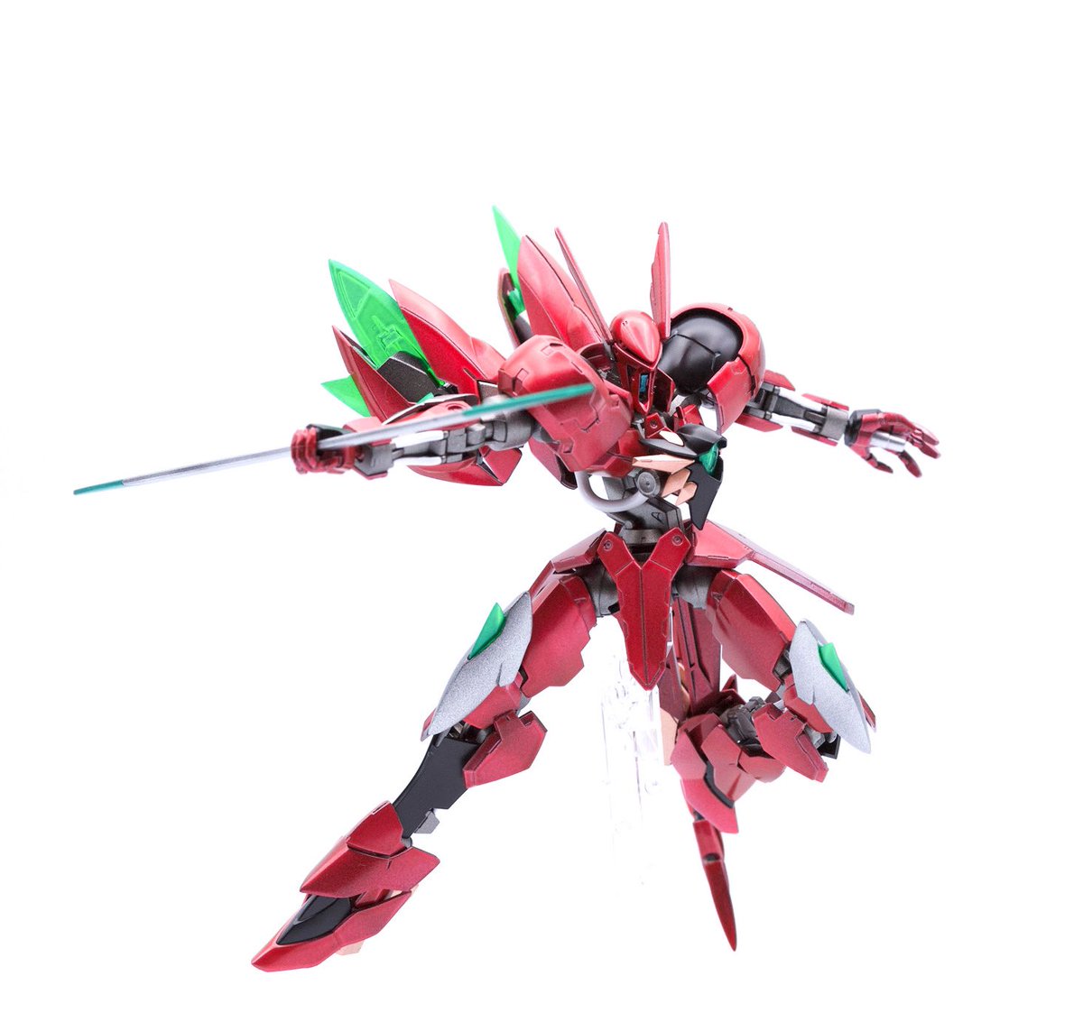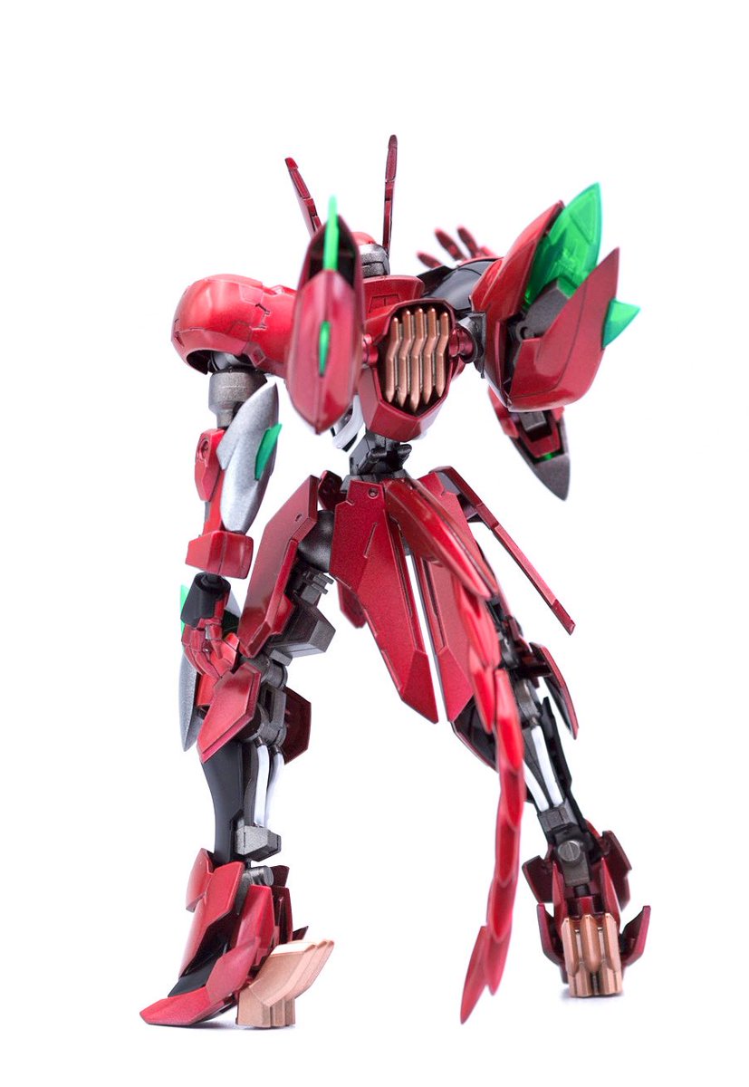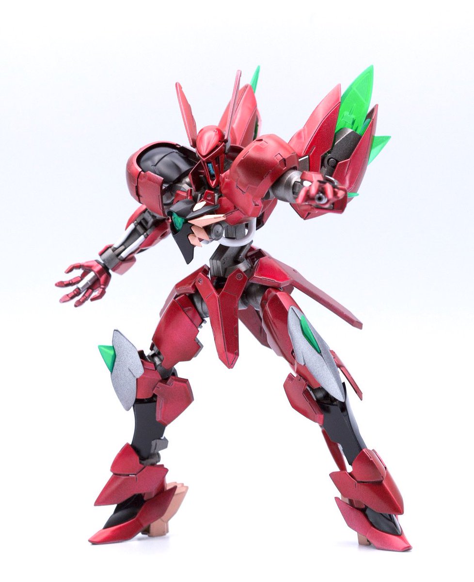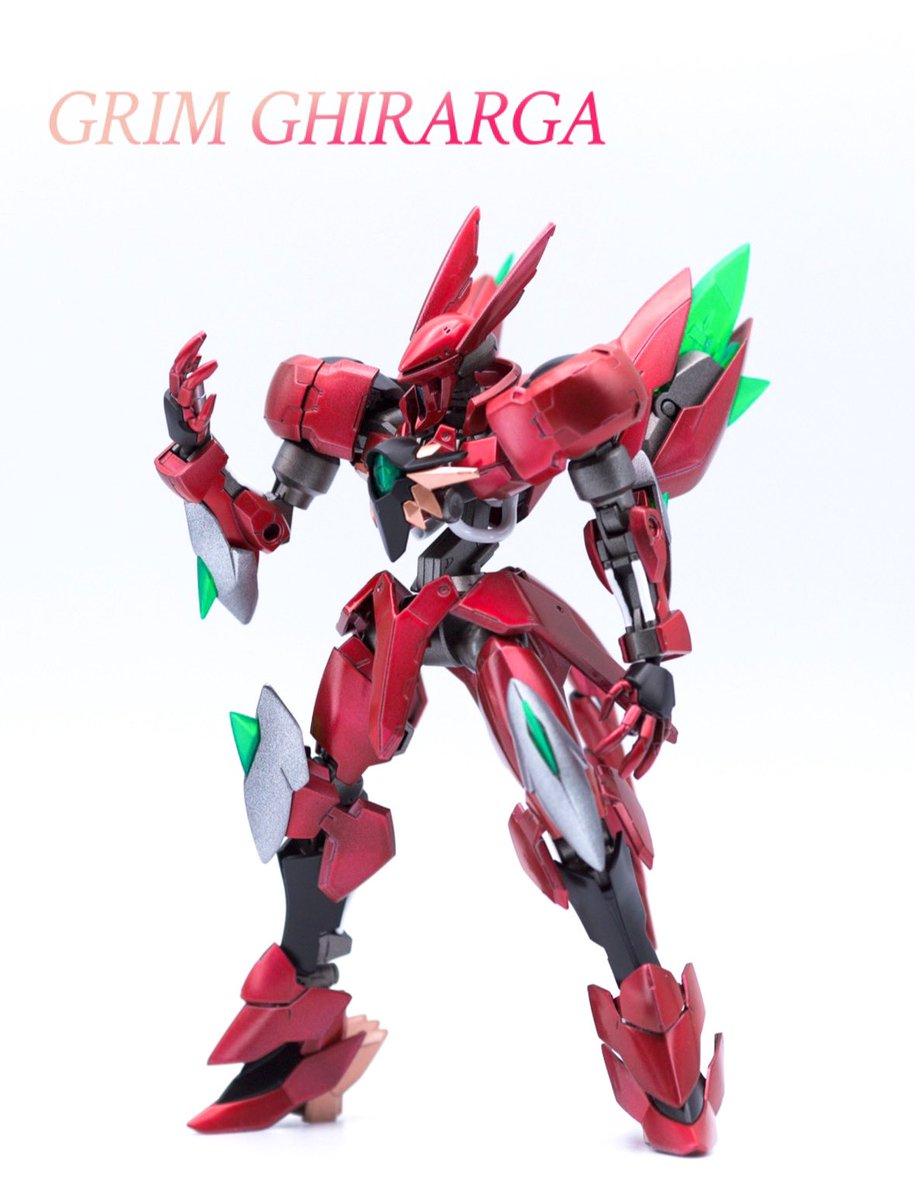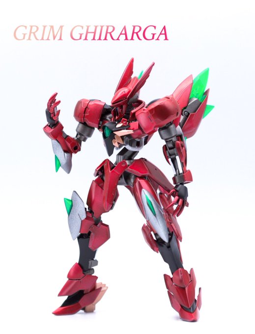 新作:グリム・ギラーガ〜転生したらヴェイガンだった〜完成でございます。 完全に悪ふざけで合わせてみたら想像以上にシンデレラフィット。 メインの赤は、研ぎ出しとかサボったなんちゃってキャンディ塗装だけど割と好きです。 #ガンプラの画像貼るとRTされると聞いて #ガンプラは自由だ
