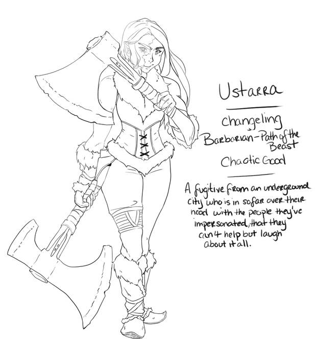 Meet Ustarra (they/them) .. .. .. .. #dnd #dungeonsanddragons #changeling #barbarian #inktober #inktober2021