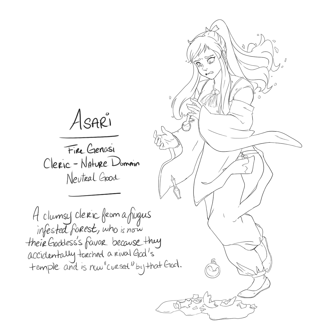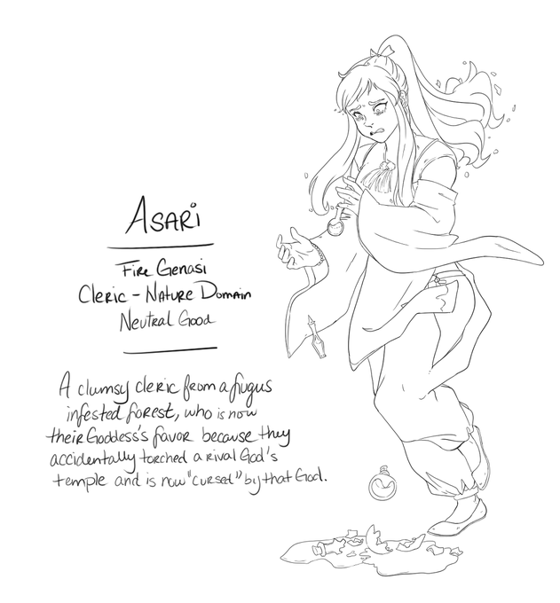 Meet Asari (she/her) .. .. .. .. #dnd #dungeonsanddragons #genasi #firegenasi #cleric #inktober #inktober2021