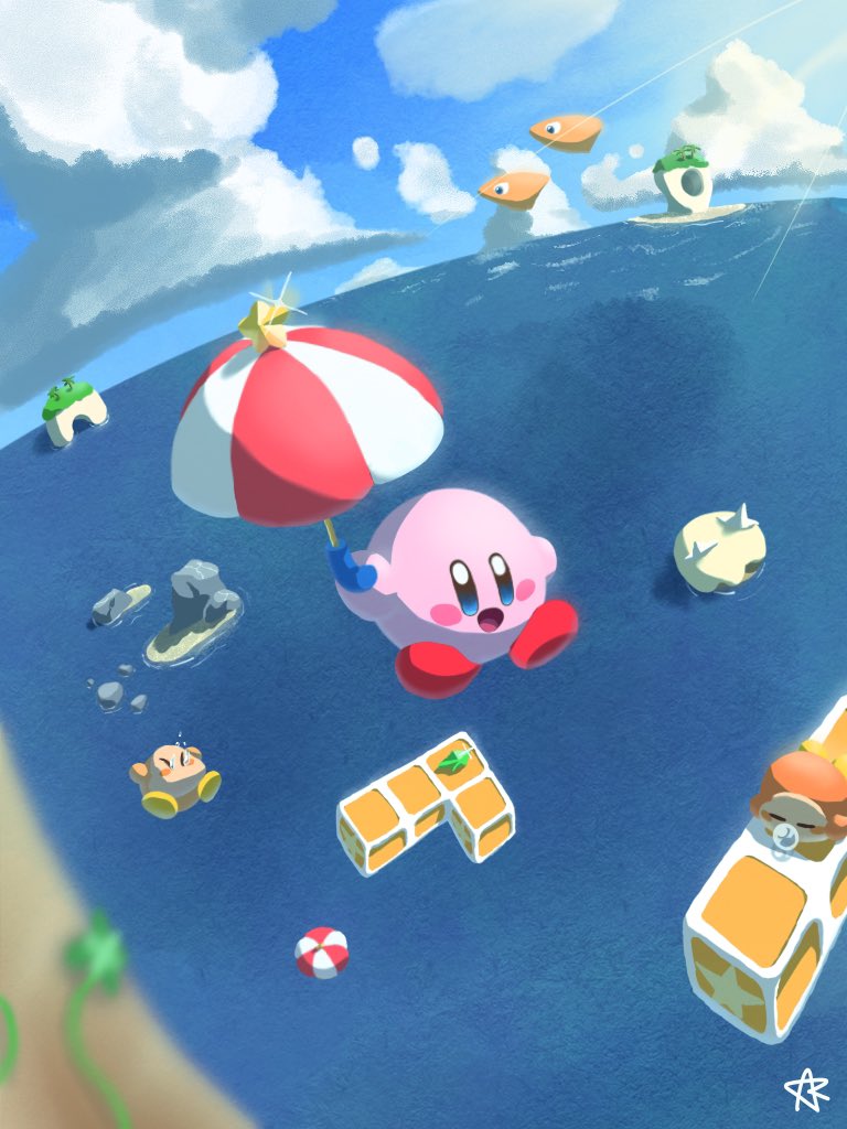 1 11 海の上で空中さんぽ #カービィ #Kirby #カービィイラスト #イラスト #絵 22/08/22 07:56