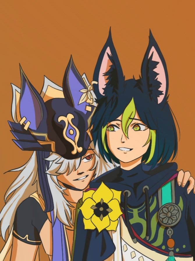 Kitsune Albedo and Vampire Kaeya concept. Albedo has no idea what to do with head pats and its adorable >//< #GenshinImapct #kaebedo #genshinimpactfanart #albedofanart #Albedo