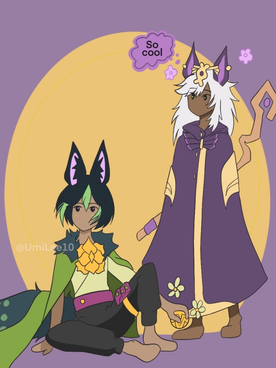 Smol Tighnari and Cyno as sky kid bishis 😊 Cyno thinks Tighnari is majestic #Tighnari #cyno #cynonari #cynari #thatskygame #genshinimpactfanart