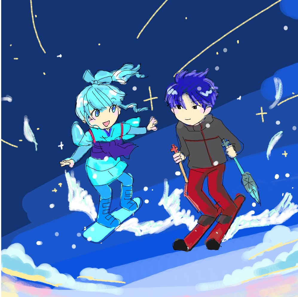 つよ虫さんに背景使用していただきました✨ 星空を滑るきむらさんのお二人のイラストがとっても綺麗で素敵なシーンになっています。ありがとうございました #ゲレンデで出会った彼女は雪女 仲良しな様子が可愛かったのでファンアート描かせていただきました☺️ twitter.com/tuyo64/status/…