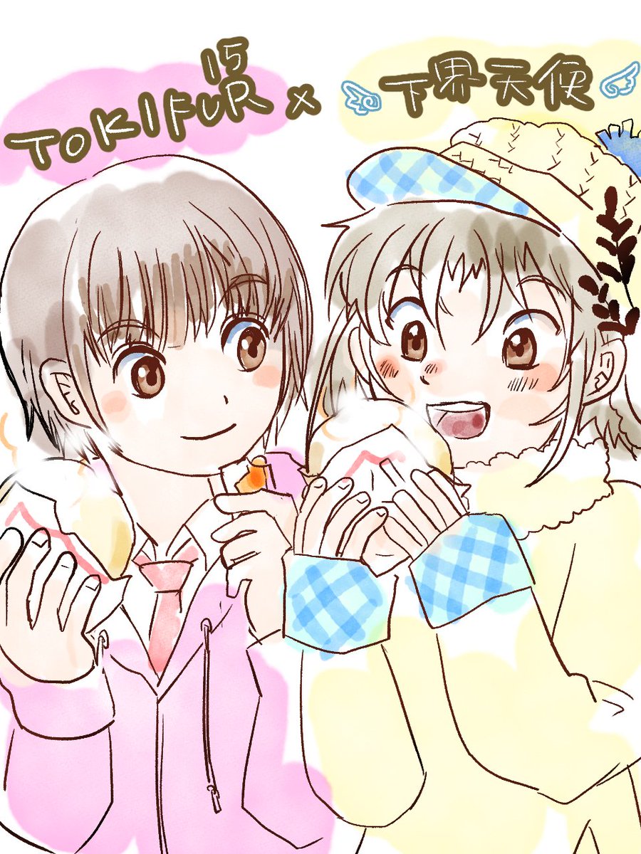 てんちゃんしーちゃん、イラストありがとうございました!杜衣しーちゃん描かせてもらいました😊学生グルメといえばコンビニ肉まん💗コンビニの美味しいもの紹介してくれる杜衣ちゃんと天使ちゃんコラボです☺️ twitter.com/Pyomkiti/statu…