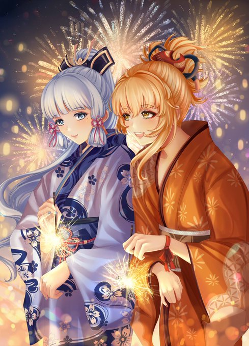 宵宮x神里綾華 #GenshinImpact #宵宮 #原神 #神里綾華 #女の子 #イラスト #二次創作 #花火 #浴衣 #夏祭り pixiv.net/artworks/99812…