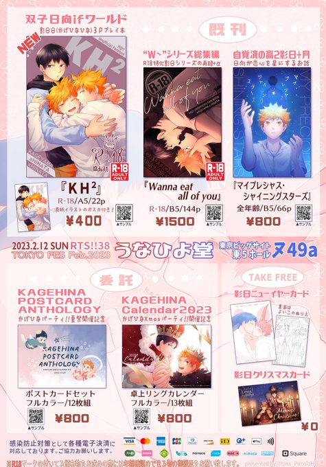 【8/20うなひよ堂お品書き】 今週末のインテのお品書きです🗒️ 夏コミと同様既刊のみとなりますが、大阪での頒布は初めての本が多いです🙌 あと今度こそ影日アンソロあるはずなのでよろしくお願いします😭 (印刷所さんに預けてあったのを搬入してもらう予定です!) pixiv: pixiv.net/artworks/11091…