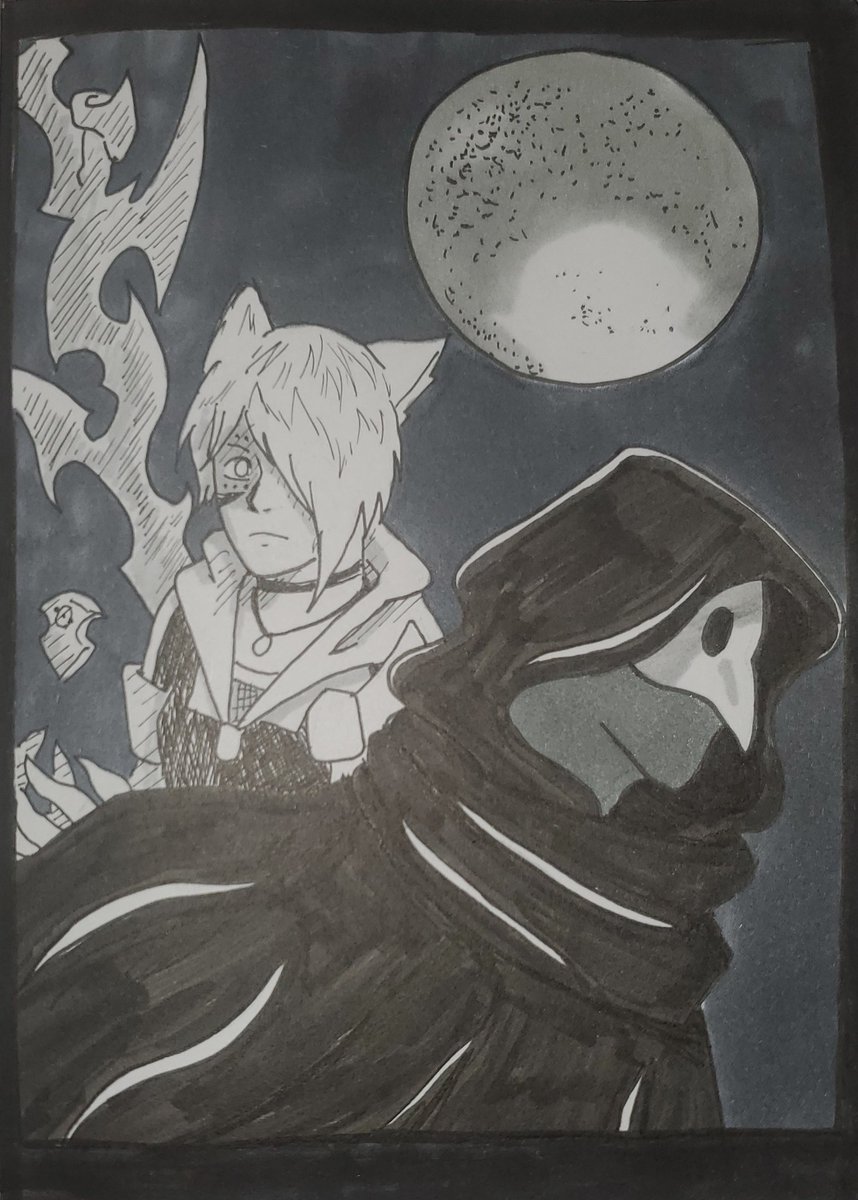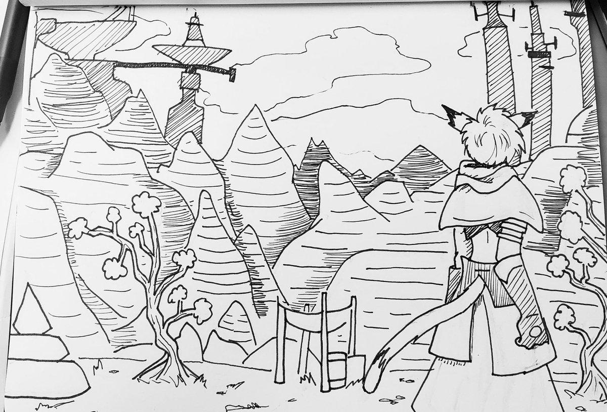 I had something else planned for today, but it wasnt happening in my sketchbook so heres this instead 🤷♀️ Idk but here you go #inktober #inktober2020 #lineart #finalfantasy14 #miqote #lightwarden #ominous