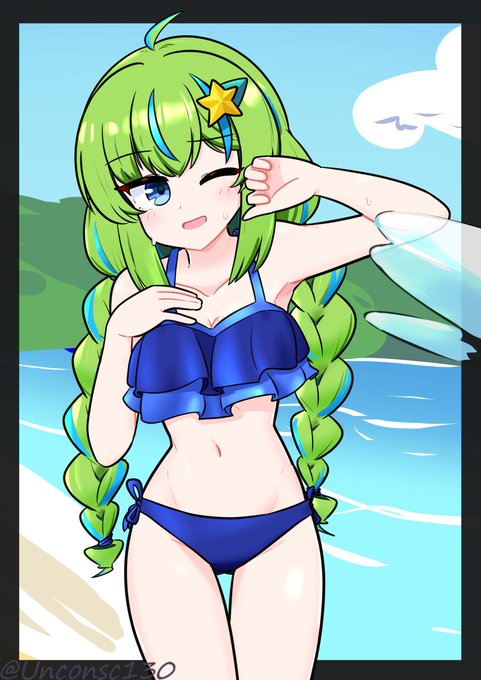 5 8 海に遊びに来た夕星思綺ちゃんをお絵描きしました~🥳🌊 #うちの子 #OC 23/04/07 19:00