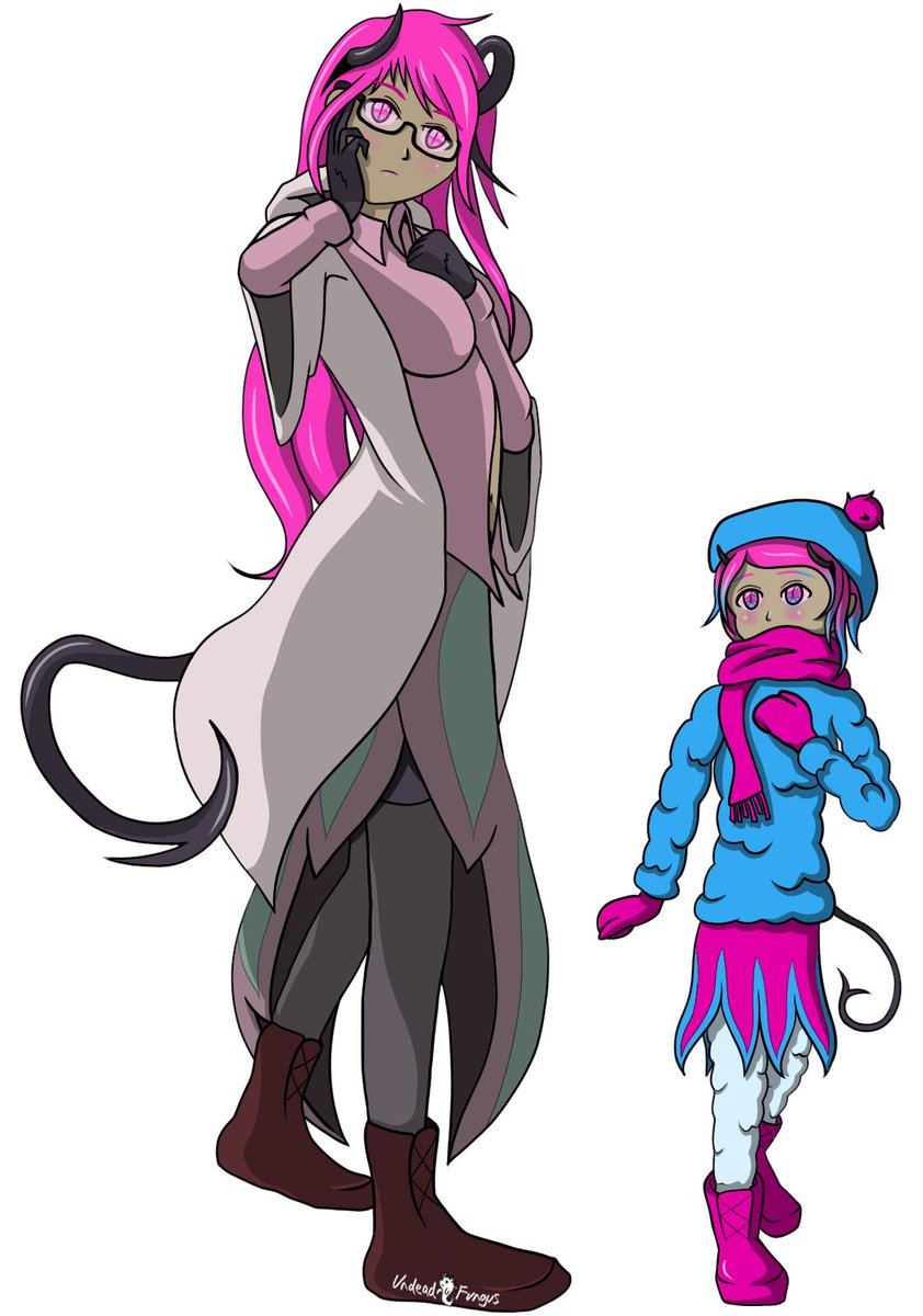 I made some demons because demons are cute, I'm not great with names though so I'm just using actual demon names mixed with human names, this is Beelzebub Dolores and her daughter Leviathan Dolores :) #cutiesaturday