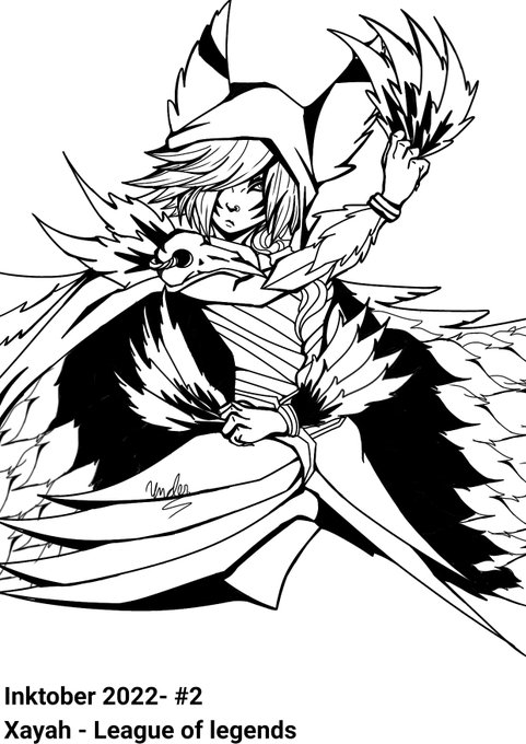 Inktober Second day Xayah from league of legends See you tomorrow #inktober2022 #LeagueOfLegendsFanArt #LeagueOfLegends #artistsontwitter