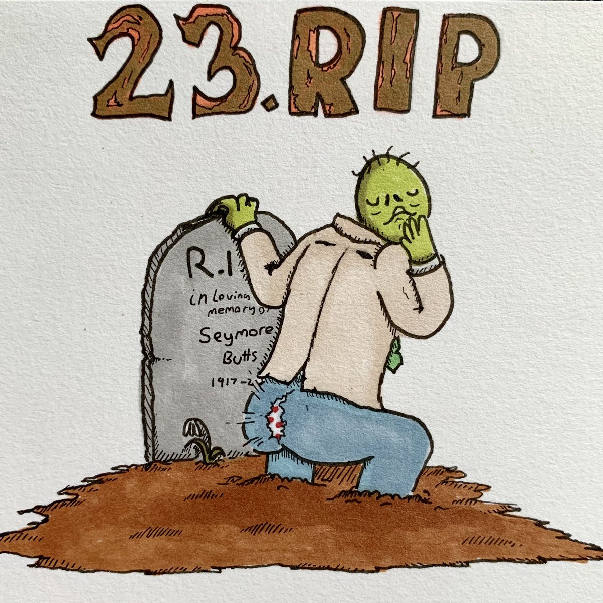 Today’s #inktober prompt is #rip Zombie was just headed out to the zombie ball when the inevitable happened. He’d blush if he wasn’t dead. #inktober2020 #zombie #ink #drawing #tombstone