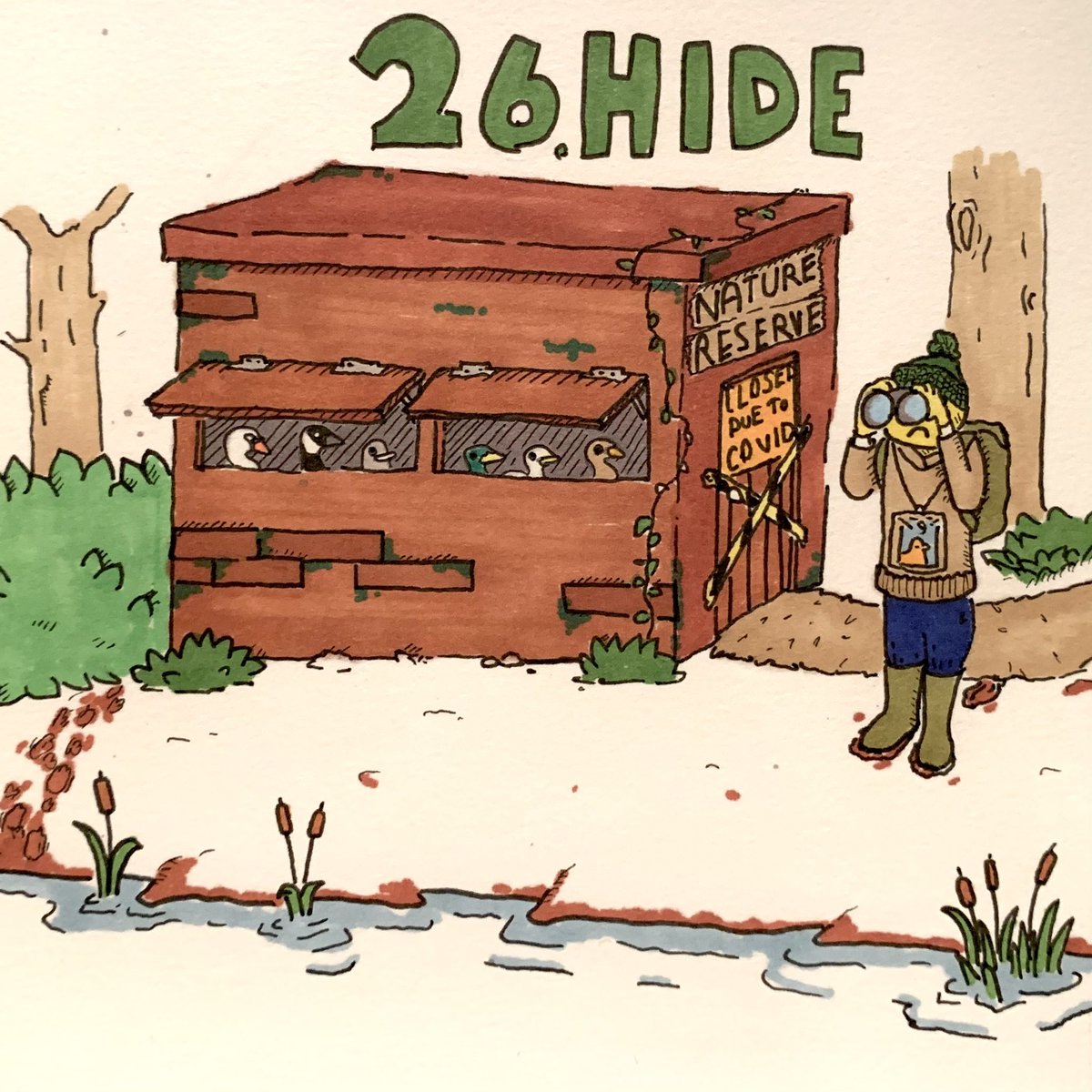 The 26th #inktober is #Hide The bird watchers had to make do without the nature reserve hides thanks to covid. However, the birds had all recently disappeared. #inktober2020 #bird #swan #duck #goose #geese #naturereserve #birdwatchers